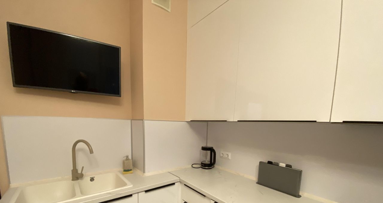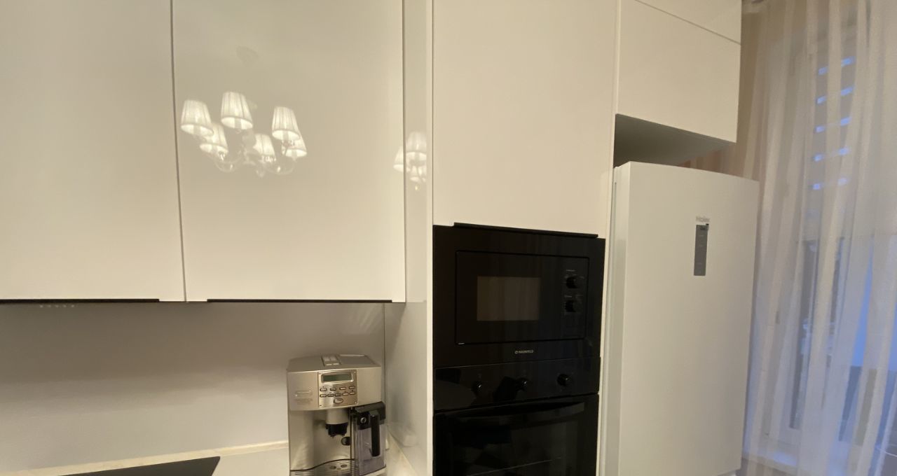 - современная кухня со встроенным кухонным гарнитуром, вся бытовая техника (холодильник, посудомоечная машина, духовой шкаф, варочная поверхность, СВЧ, чайник), посуда;