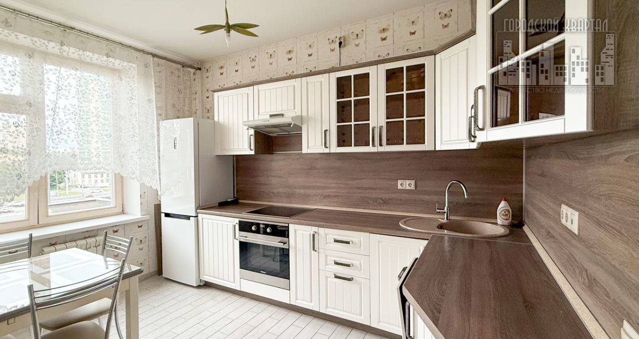 КУХНЯ встроенная мебель, бытовая техника, обеденный стол, стулья