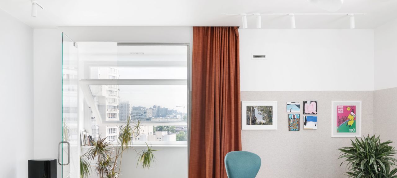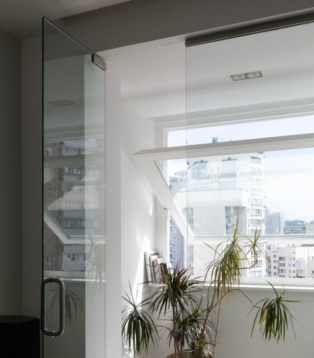 На балконе оборудован стол для мини-кабинета с звукоотражающими панелями для снижения эха (нет на фото).