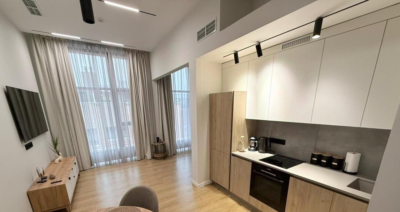 Сдаётся стильная двухкомнатная квартира в современных апартаментах, расположенных на 8 этаже монолитного дома 2014 года постройки. Общая площадь квартиры составляет 87 кв. м, жилая площадь — 57 кв. м, а площадь кухни — 2.8 кв. м. Высокие потолки (3.3 метра) добавляют ощущение простора. Из окон открывается вид во двор, что гарантирует тишину и уют.