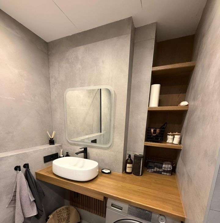 Квартира с дизайнерским ремонтом, обставлена современной мебелью. В каждой комнате есть всё необходимое для комфортного проживания. На кухне установлена мебель и техника: холодильник, посудомоечная машина и кондиционер. В квартире два санузла: один с ванной, другой — с душевой кабиной, что очень удобно для большой семьи или компании. Также в наличии стиральная машина и телевизор. Для удобства жильцов проведен интернет.