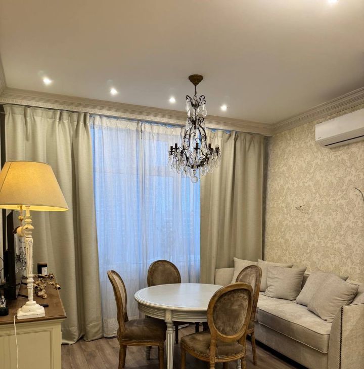 Квартира с дизайнерским ремонтом, готова к комфортному проживанию. В наличии вся необходимая техника: кондиционер, холодильник, телевизор и стиральная машина. Мебель имеется как на кухне, так и в комнате, что позволит вам сразу же заселиться без лишних хлопот. Санузел совмещённый, оформлен в современном стиле. Окна выходят на улицу, обеспечивая достаточную освещенность и виды на город.