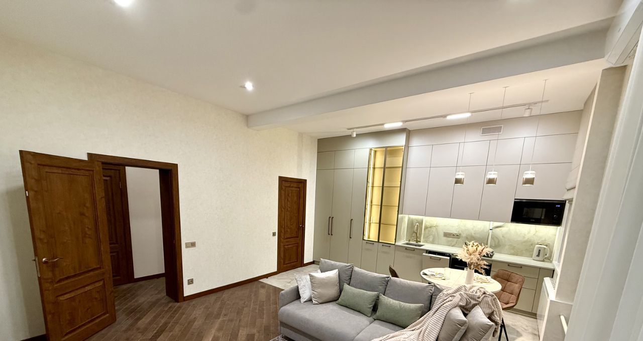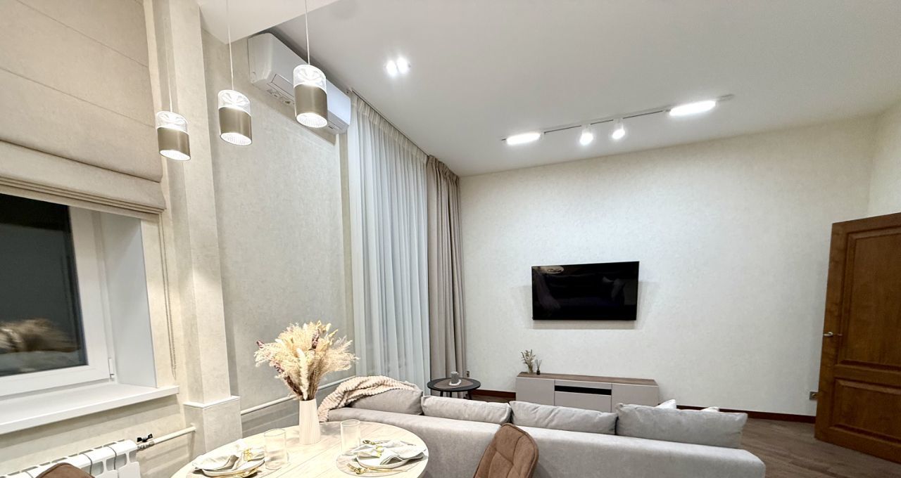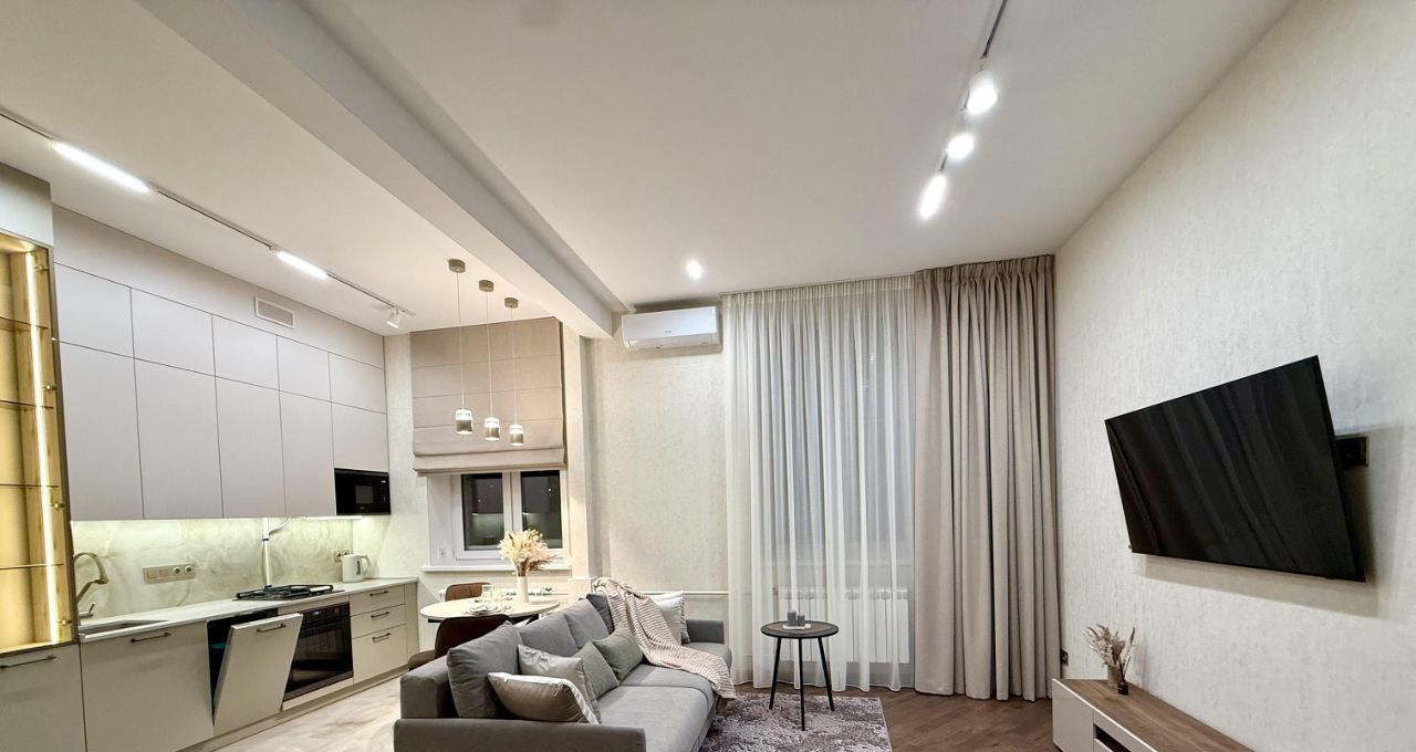 Сдаётся впервые!!! Просторная , светлая, тёплая квартира с дизайнерским ремонтом. Насладитесь уникальным сочетанием сталинского классицизма , современными комфортными дизайнерскими решениями и материалами, близостью к центру и тишиной зеленых московских двориков. Планировка: Студио( совмещенная кухня и гостиная), просторная спальня с балконом, раздельный санузел, бытовая комната( сторидж), холл. Окна выходят во двор. В квартире только закончен качественный ремонт с полной заменой коммуникаций. В отделке использованы качественные , натуральные материалы. Квартира полностью укомплектована мебелью и техникой, включая кондиционеры, посудомоечную машину, тв, фильтрацию воды, стиральная ( сушильная) машина. Продумана система хранения: удобные вместительные встроенные шкафы в холле и спальне, а также отдельная бытовая комната. Квартира ждёт своих арендаторов, строго без домашних питомцев, одного или семейную пару.
