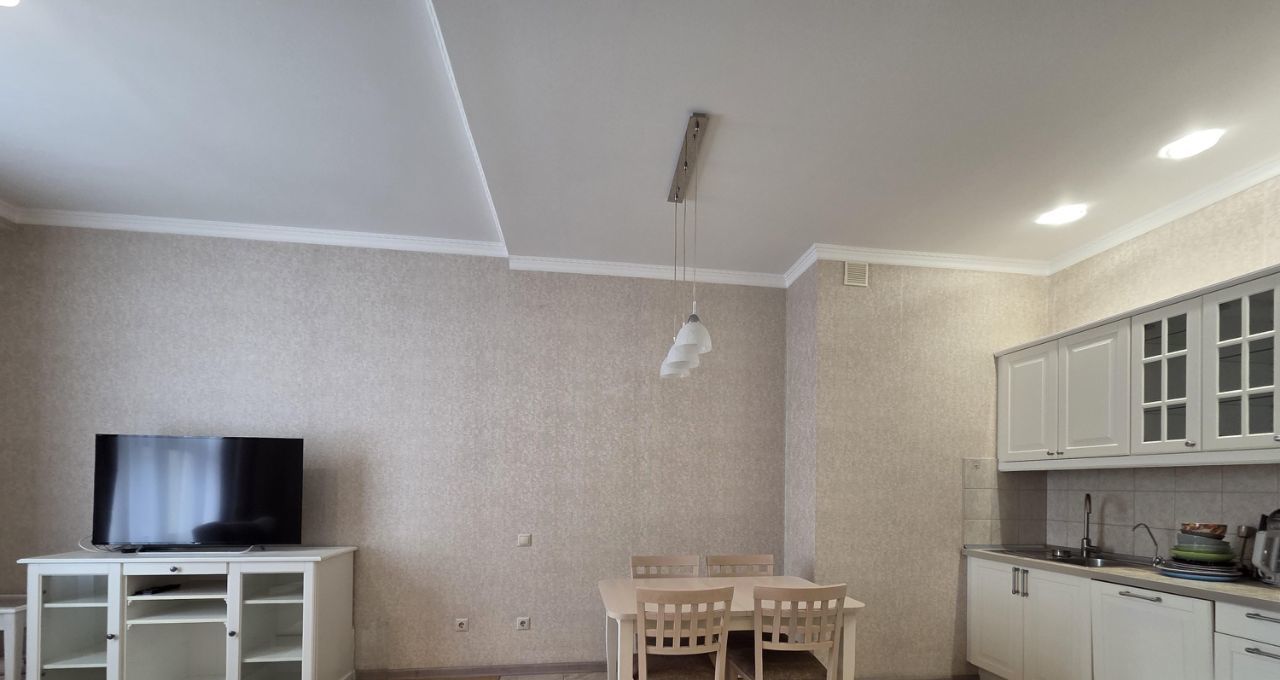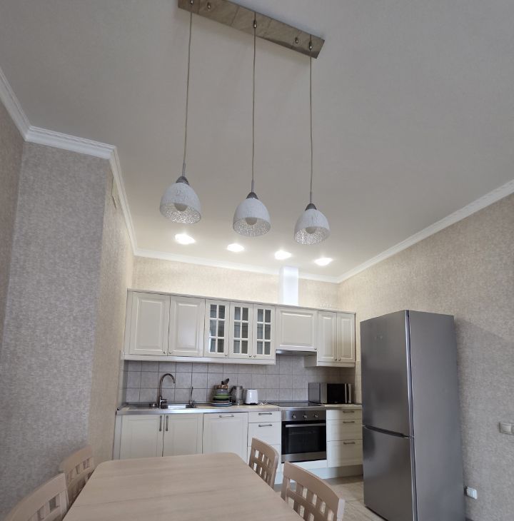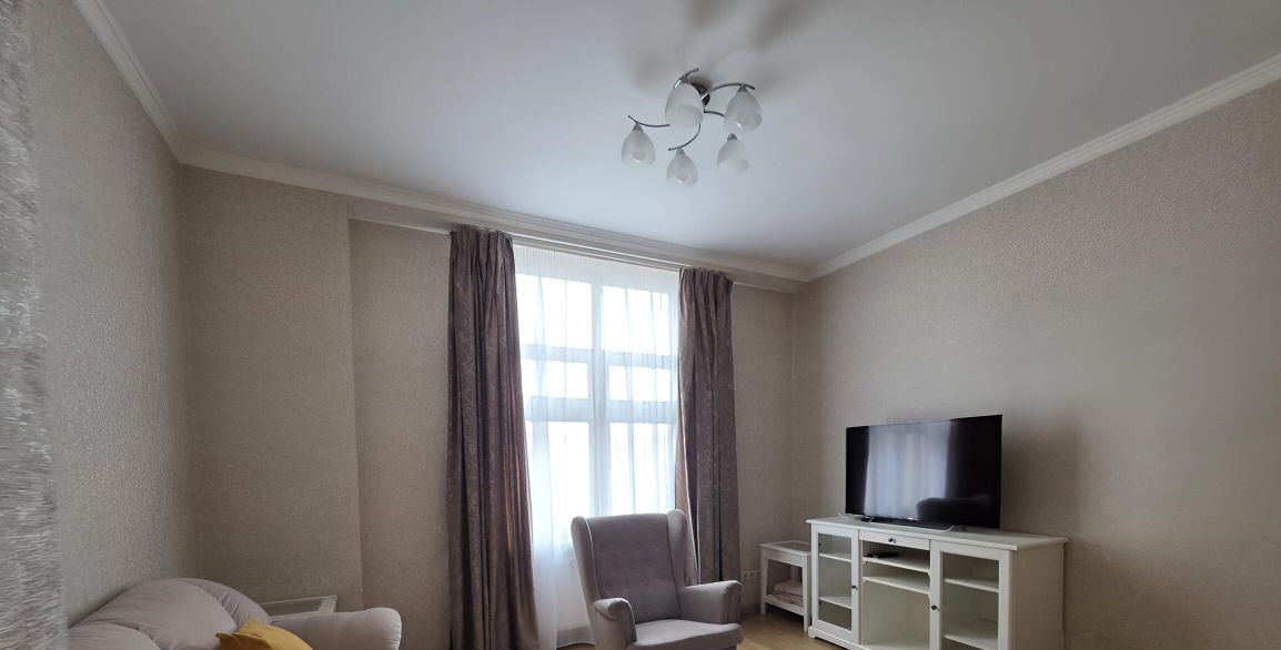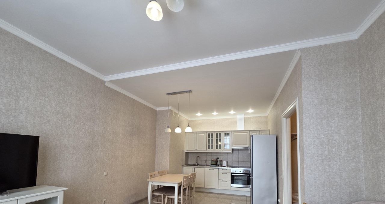 Квартира полностью меблирована: в комнатах и на кухне есть вся необходимая мебель для комфортного проживания. В наличии современная техника: холодильник, телевизор, стиральная, посудомоечная машины, микроволновая