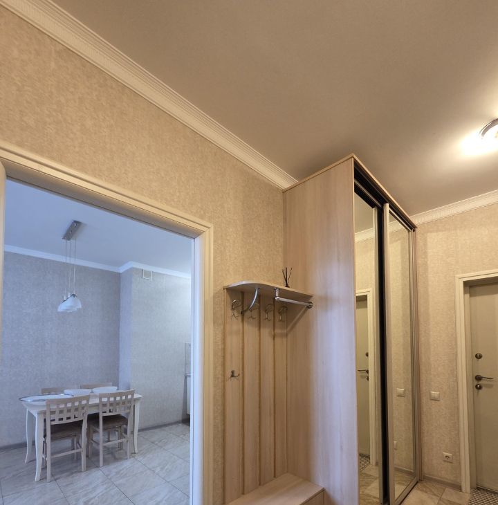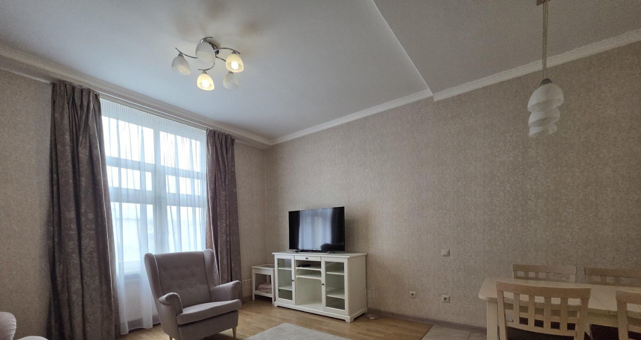 Престижный комплекс, вкус в каждой детали, квартира формата евро: кухня совмещена с гостиной и одна изоливанная комната-спальня.