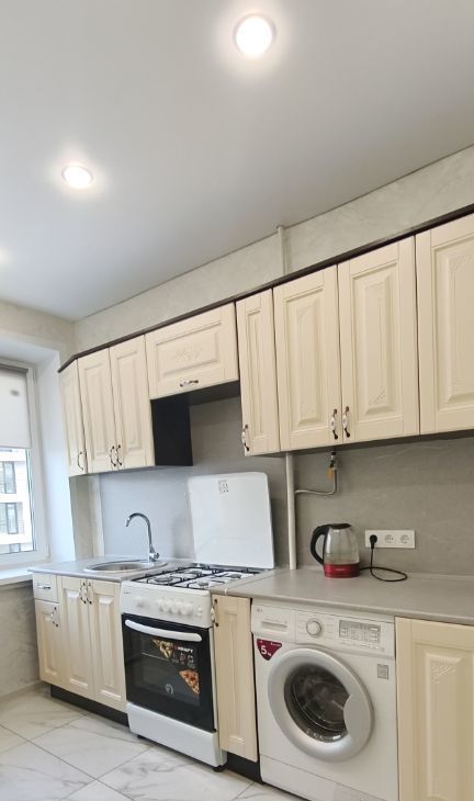 В квартире выполнен свежий косметический ремонт. Просторная кухня площадью 9 кв. м оборудована всей необходимой мебелью и техникой:
