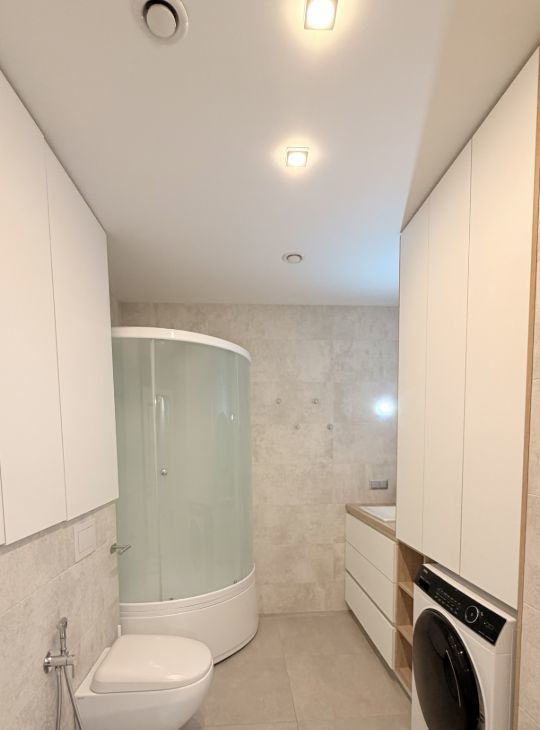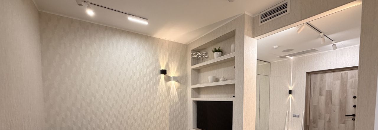 В апартаменте все необходимое для жизни: бытовая техника и мебель. Вместительные шкафы, телевизор, рабочее место и прочие предметы интерьера.