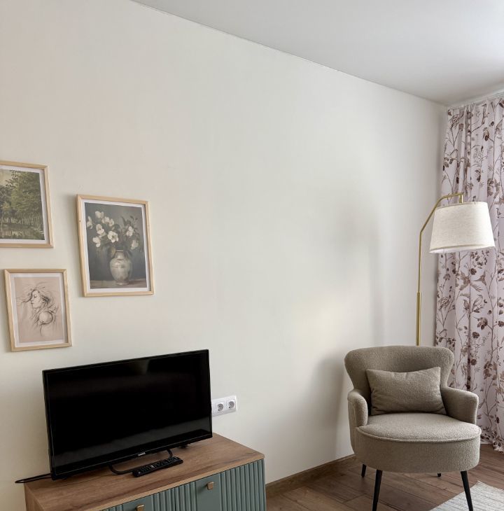 В квартире сделан дизайнерский ремонт, что создаёт атмосферу новизны и комфорта. Общая площадь квартиры 41,7 кв. м. - функциональная кухня со всей необходимой бытовой техникой и мебелью, спальня 10.1 кв.м., расслабляющая гостиная 19.2 кв.м., раздельный санузел. Эргономичное пространство с местами для хранения, актуальный дизайн и продуманные детали интерьера. Окна выходят во двор, где тихо и спокойно.
