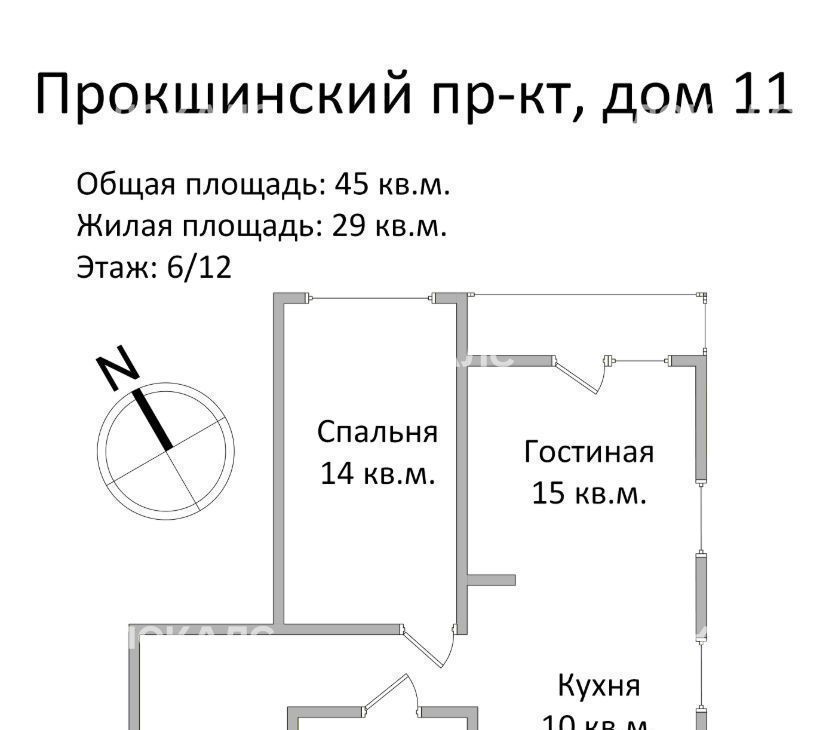 2-к кв. Москва просп. Прокшинский, 11 (45.0 м²)