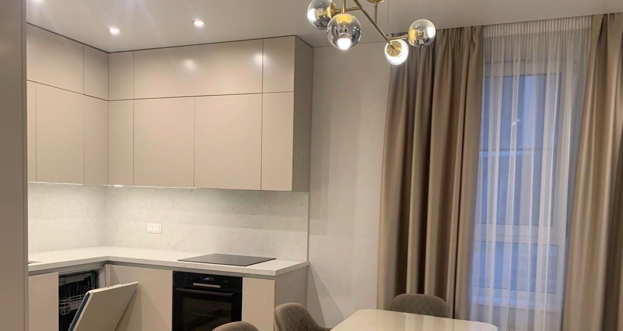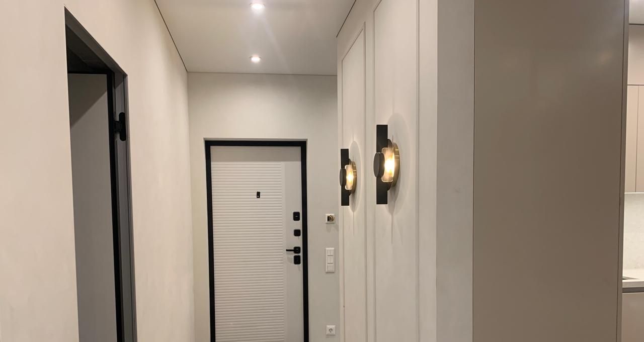 Сдается уютная двухкомнатная квартира с евроремонтом в современном доме 2022 года постройки. Общая площадь квартиры составляет 56 кв. м, из них 36 кв. м — жилая площадь, а кухня занимает 10 кв. м. Квартира расположена на 2-м этаже 19-этажного монолитного дома. Высота потолков — 2,84 метра, что добавляет пространству воздуха и света.