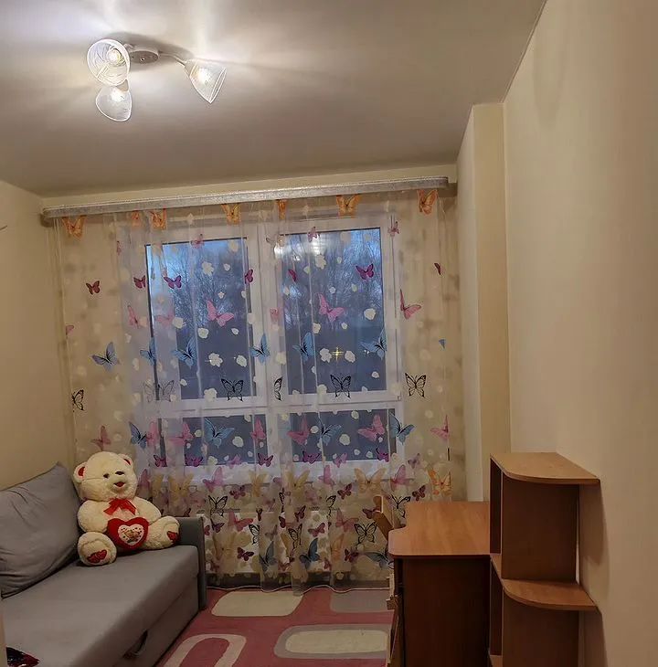Квартира оборудована шкафами и диваном, что позволяет удобно разместиться 2-4 людям. Санузел совмещенный, выполнен в современном стиле. Оборудован стиральной машиной, электрическим змеевиком, зеркалом с подсветкой и электрической разедкой. В коридоре имеется пылесос, гладильная доска, утюг и сушилка для белья. Из окон открывается вид на городскую улицу и лес, а также есть застекленная лоджия, где можно наслаждаться свежим воздухом.