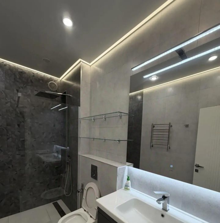 Индукционная плита и электрическая духовка совмещенная с пароваркой. Два телевизора. Энегоэффективная система отопления и учета тепла. Мастервыключатель. Аквасторож. Роутер. Гардеробная с системой хранения и большой зеркальный шкаф в спальне со встроенным дамским столиком. Квартира полностью меблирована, все остается Покупателю - мебель, бытовая техника и т.д.