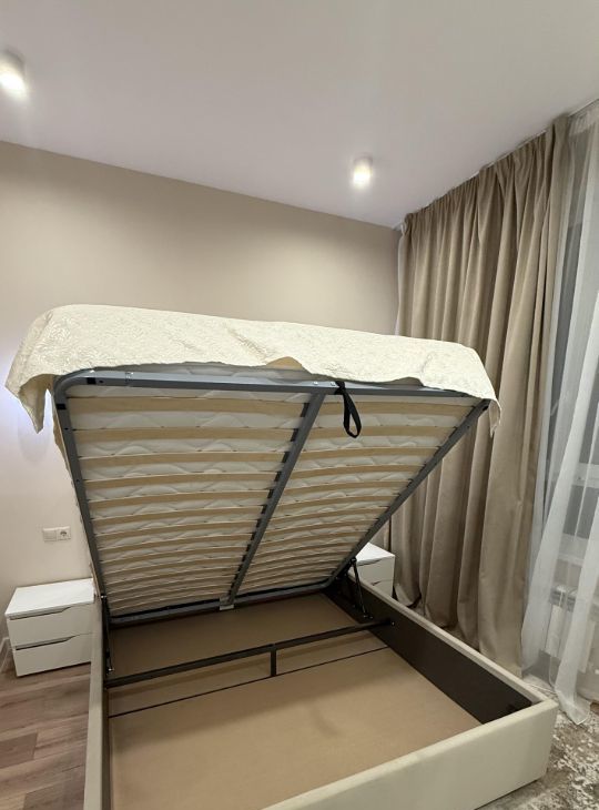 Кровать с подъемным механизмом , диван с местом для хранения. Есть балкон , полностью освободим , пока там коробки от техники.