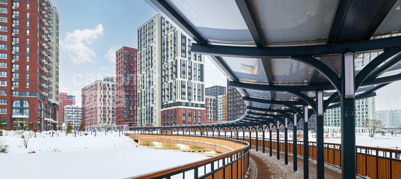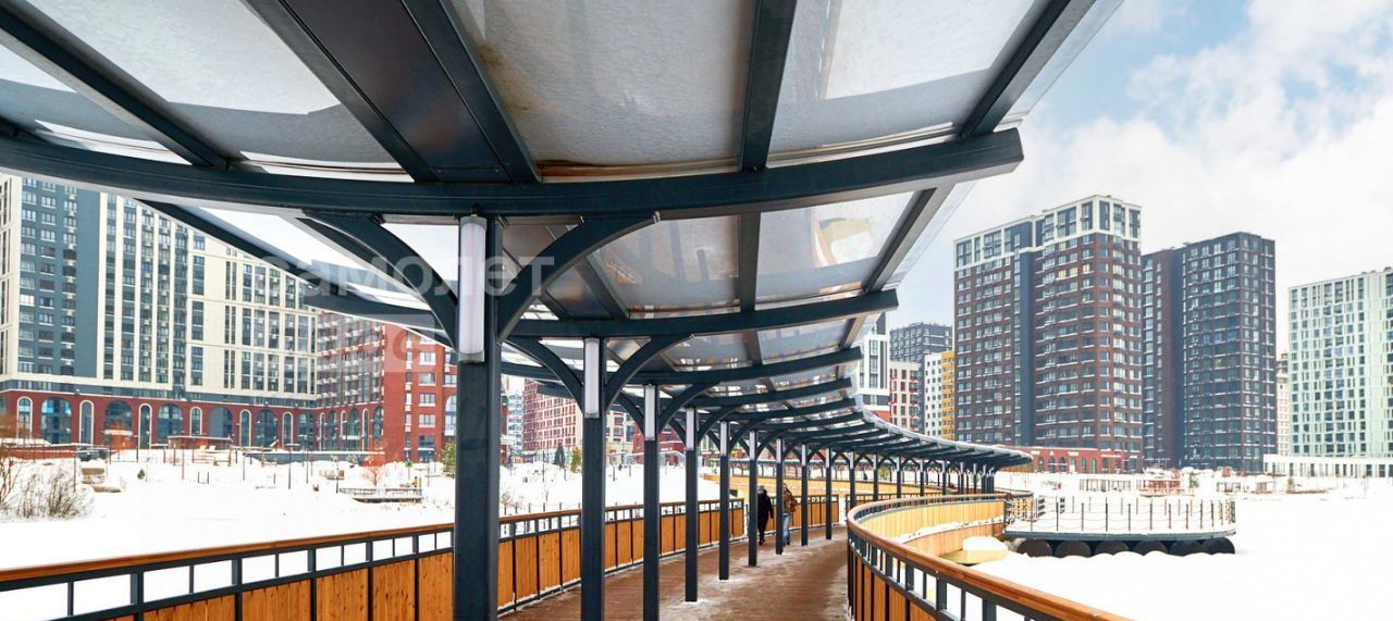 Новый жилой комплекс с благоустроенной территорией, парком, собственной набережной с прогулочными зонами и беседками для отдыха.