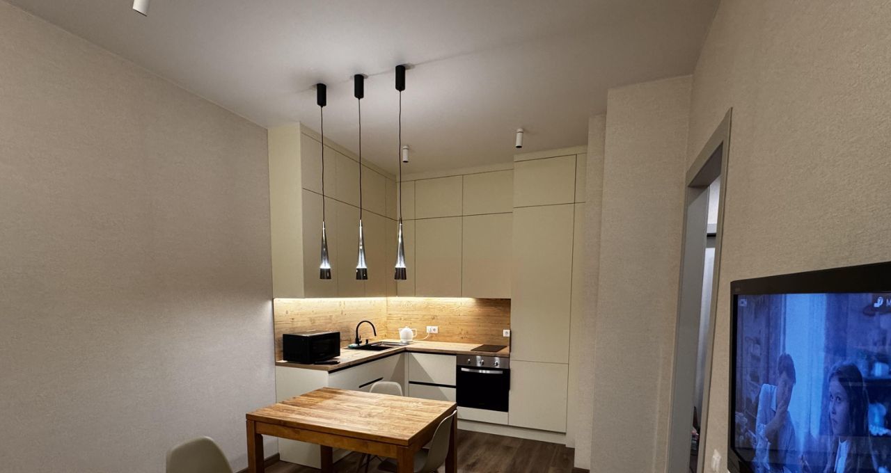 Квартира полностью укомплектована мебелью и техникой (посудомоечная и стиральная машина, кондиционер, микроволновка, чайник, вытяжка, духовой шкаф, варочная панель, холодильник, телевизор, пылесос, роутер + много места для хранения).
