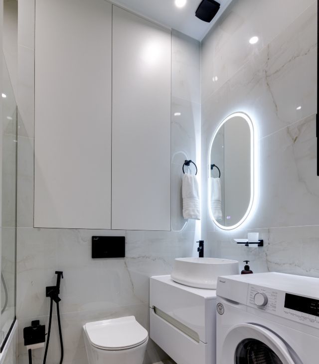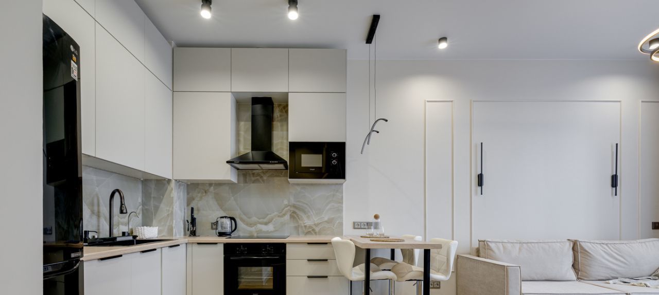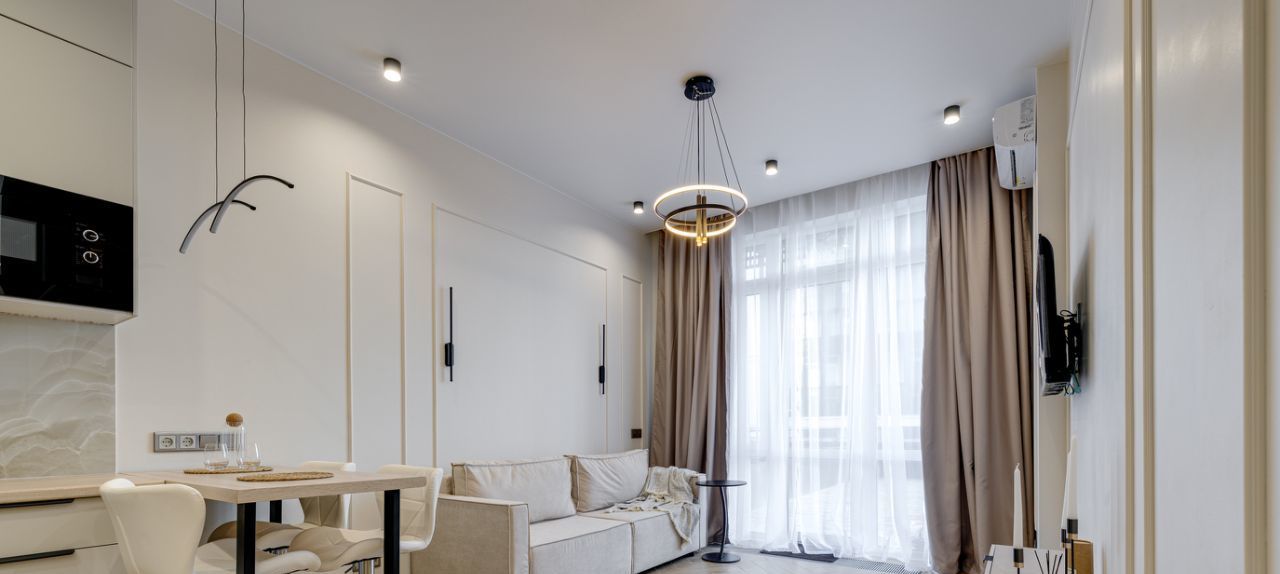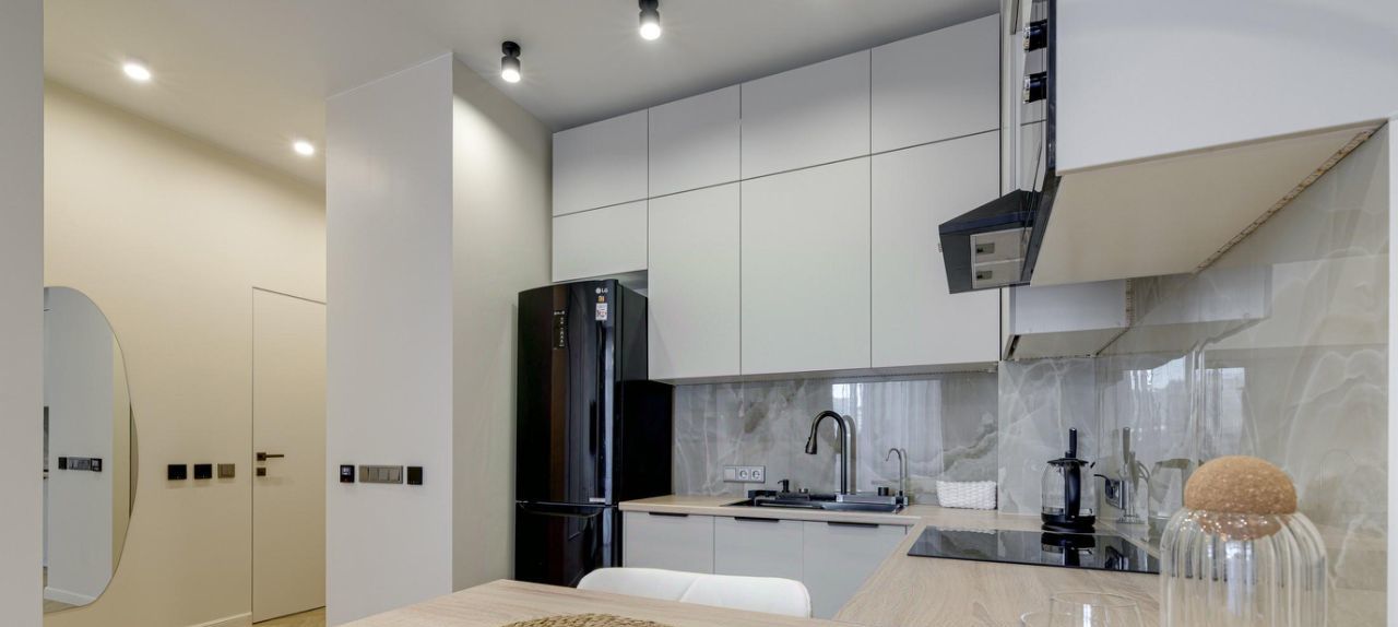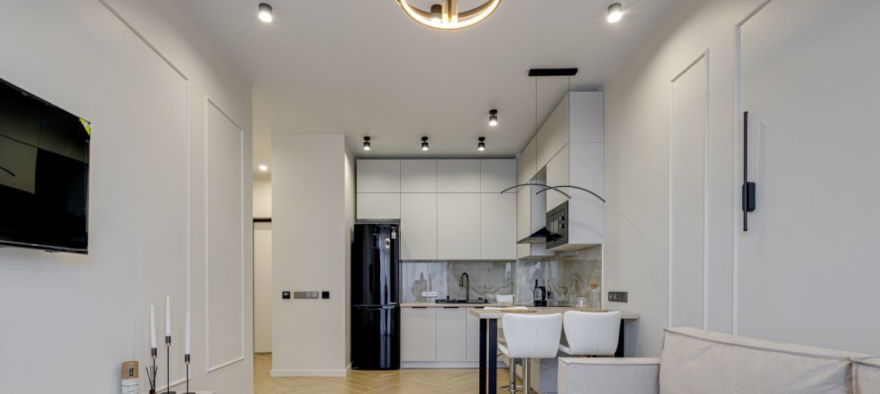 В квартире есть абсолютно всё необходимое для комфортного проживания - от мебели и техники до посуды .