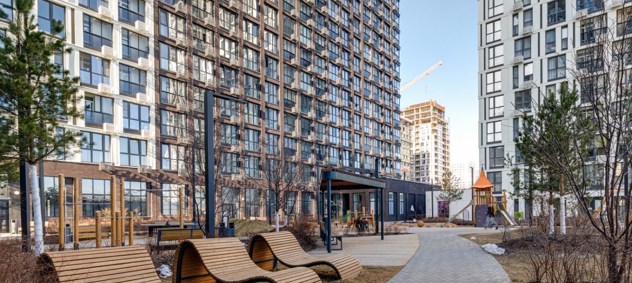 Развитая инфраструктура. До станции метро "Прокшино" 9 минут. Первая линия к озеру и прогулочным зонам комплекса.