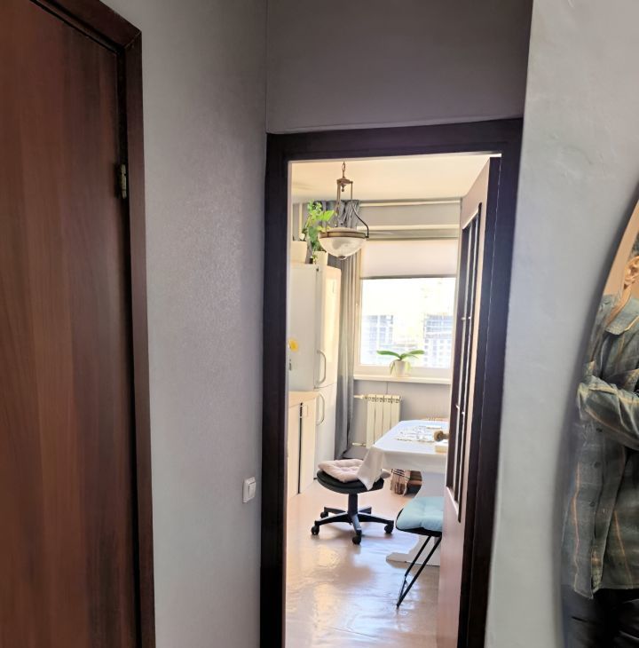 Хороший обычный ремонт. Заливов, плесени не было, запахов, животных, тараканов в квартире нет. Окна выходят во двор на юго-восточную сторону.