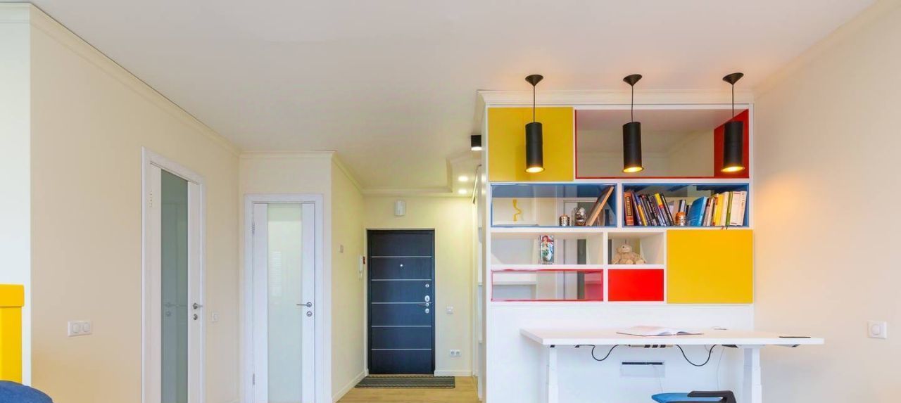 Интерьер: авторский ремонт в стиле художника-модерниста Пита Мондриана. Четкие геометрические формы, лаконичная палитра, создающая уютную и стильную атмосферу.