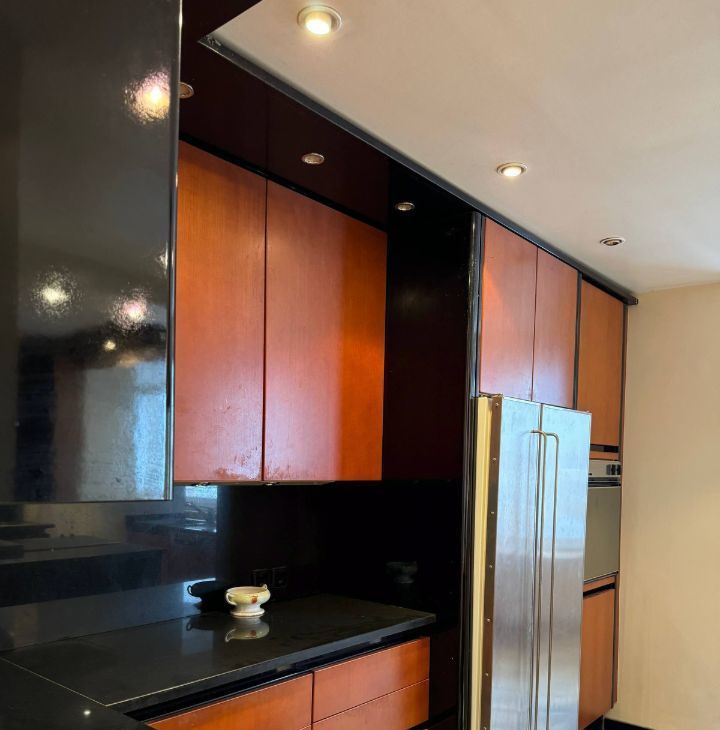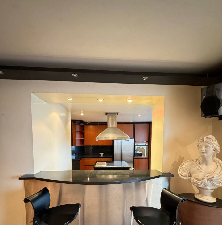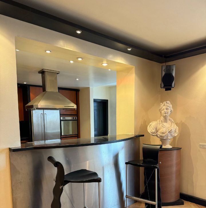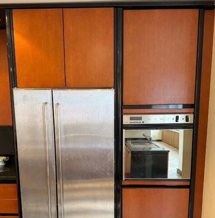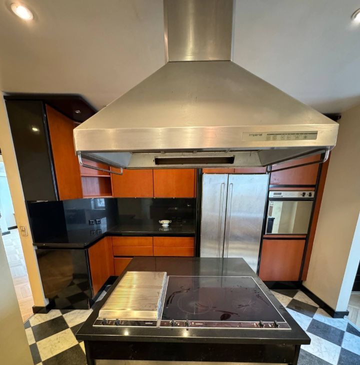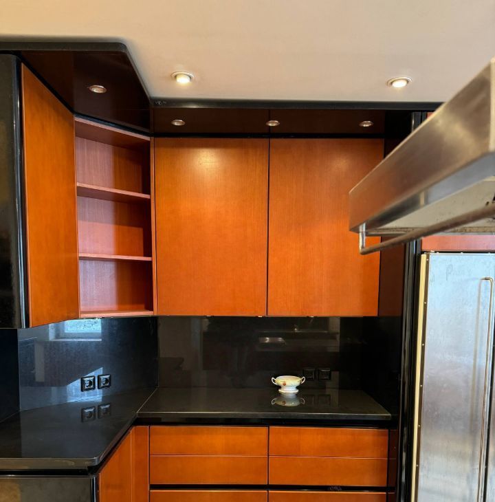 - Кухня 15 м² с барной стойкой: профессиональная техника Gaggenau (духовой шкаф, стеклокерамическая плита с грилем), холодильник Admiral Side by side, мебель SieMatic с посудомоечной машиной Siemens и морозильной камерой Atag.