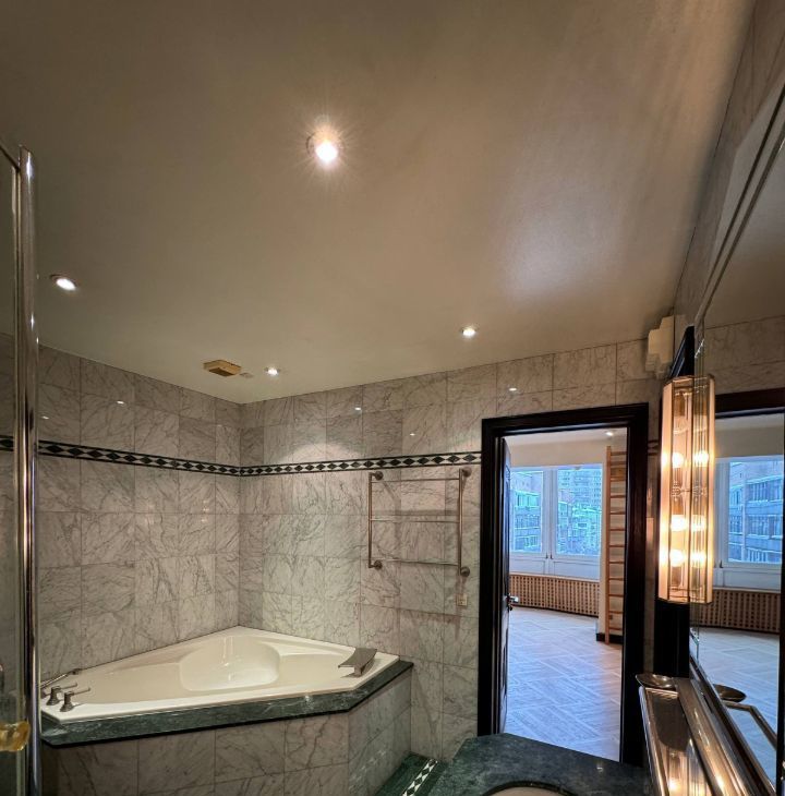 - Мастер-спальня 15,5 м² с большой ванной: джакузи, душевая кабина, биде, пол с подогревом.