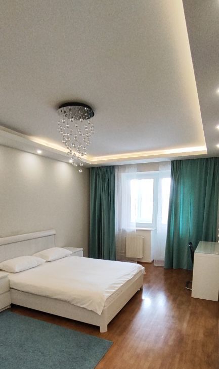 Квартира в отличном состоянии. Имеется все необходимое для комфортного проживания: мебель (кухонный гарнитур, 1 диван двуспальный, двуспальная кровать king size , шкаф-купе, кухонный стол, со стульями) и техника (кондиционер, стиральная машина, холодильник, варочная панель, духовой шкаф, телевизор, микроволновка и чайник). Большая комната 32,5 кв.м. поделена на зоны (кабинет и зона отдыха с диваном и телевизором). Большая спальня 21.6 кв.м. Уютная и просторная кухня. Вместительная гардеробная со шкафом-купе. Два санузла(большой с ванной и второй с умывальником) в санузле теплые полы. На площадке 3 квартиры. Приличные соседи. ЖК бизнес класса с большой и огороженной территорией с прогулочными зонами, летом красиво и зелено(работает ландшафтный дизайнер и садовник), детские и спортивные площадки. Посторонних машин нет, въезд на территорию ЖК по пропускной системе, наземная и подземная парковка. Красивая входная группа, подъезд сквозной на две стороны, консьерж постоянно.