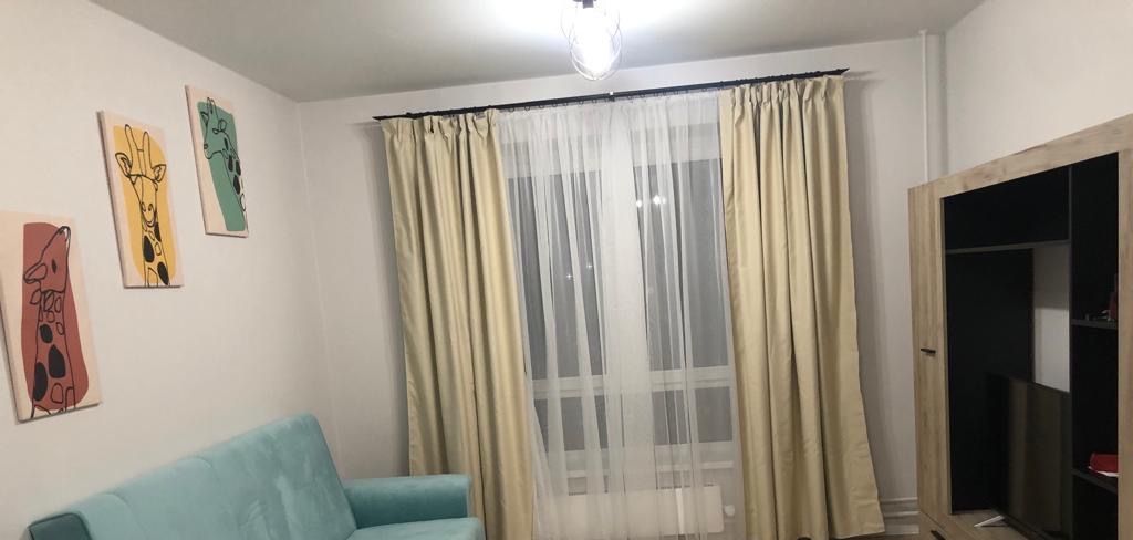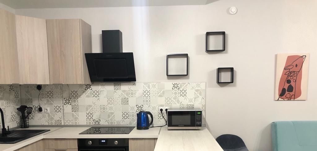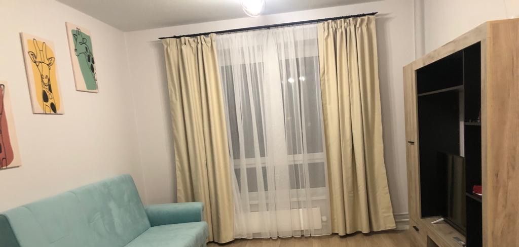 Сдается современная однокомнатная квартира с евроремонтом на 21-м этаже нового 23-этажного дома. Общая площадь квартиры составляет 38,6 кв. м, из которых 21 кв. м — жилая и 9 кв. м — кухня. Высота потолков — 2,68 метра. Окна выходят во двор, что обеспечивает тишину и комфорт.