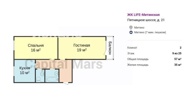 2-к кв. Москва Пятницкое ш., 21 (57.0 м²)
