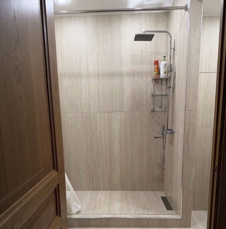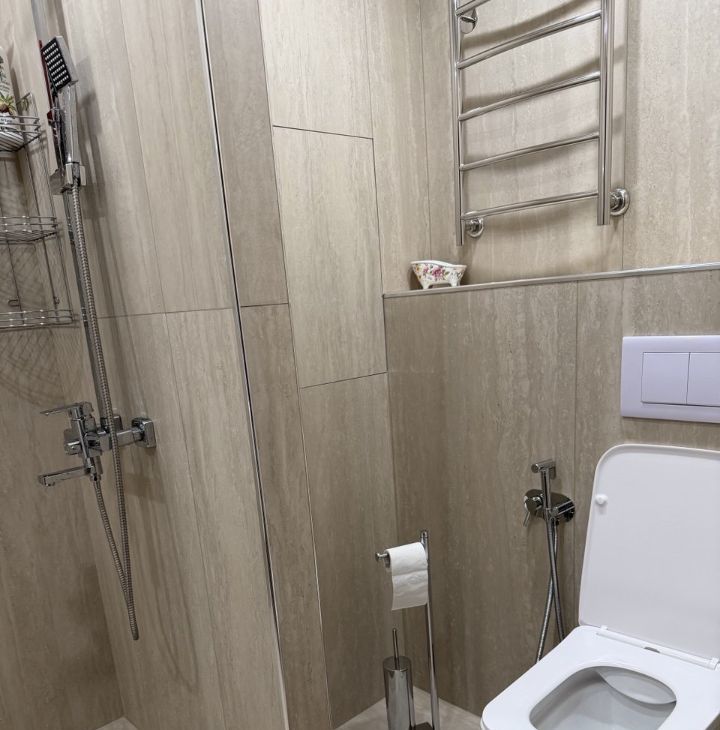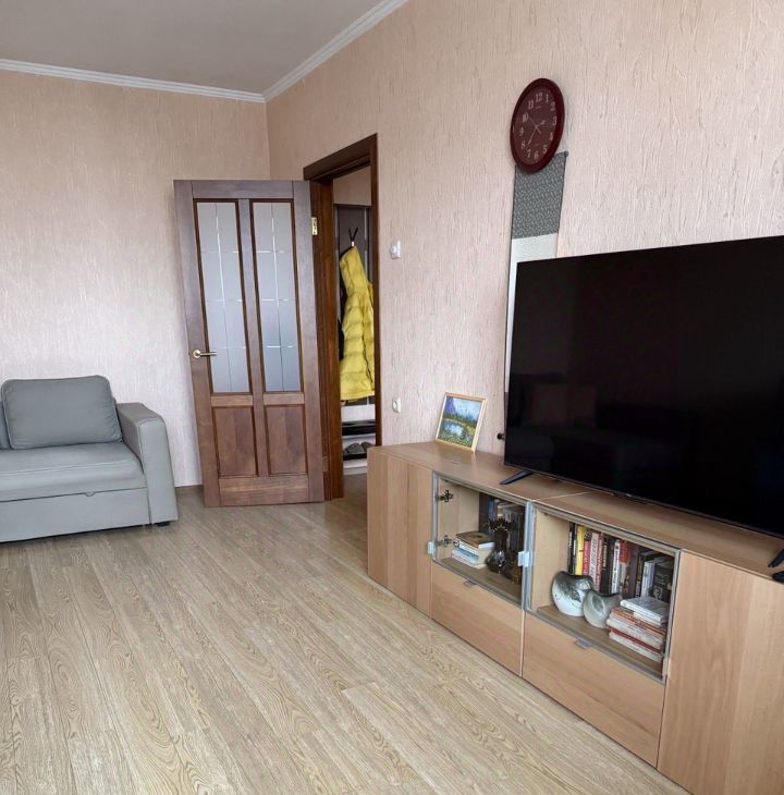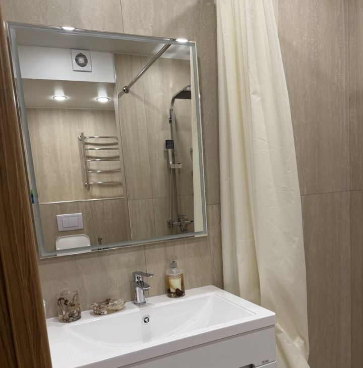 В квартире хороший ремонт, есть всё необходимое для комфортного проживания: кондиционер, холодильник, посуда большой новый телевизор, мебель установлена как в комнате, так и на кухне. Новый ремонт в ванной комнате.