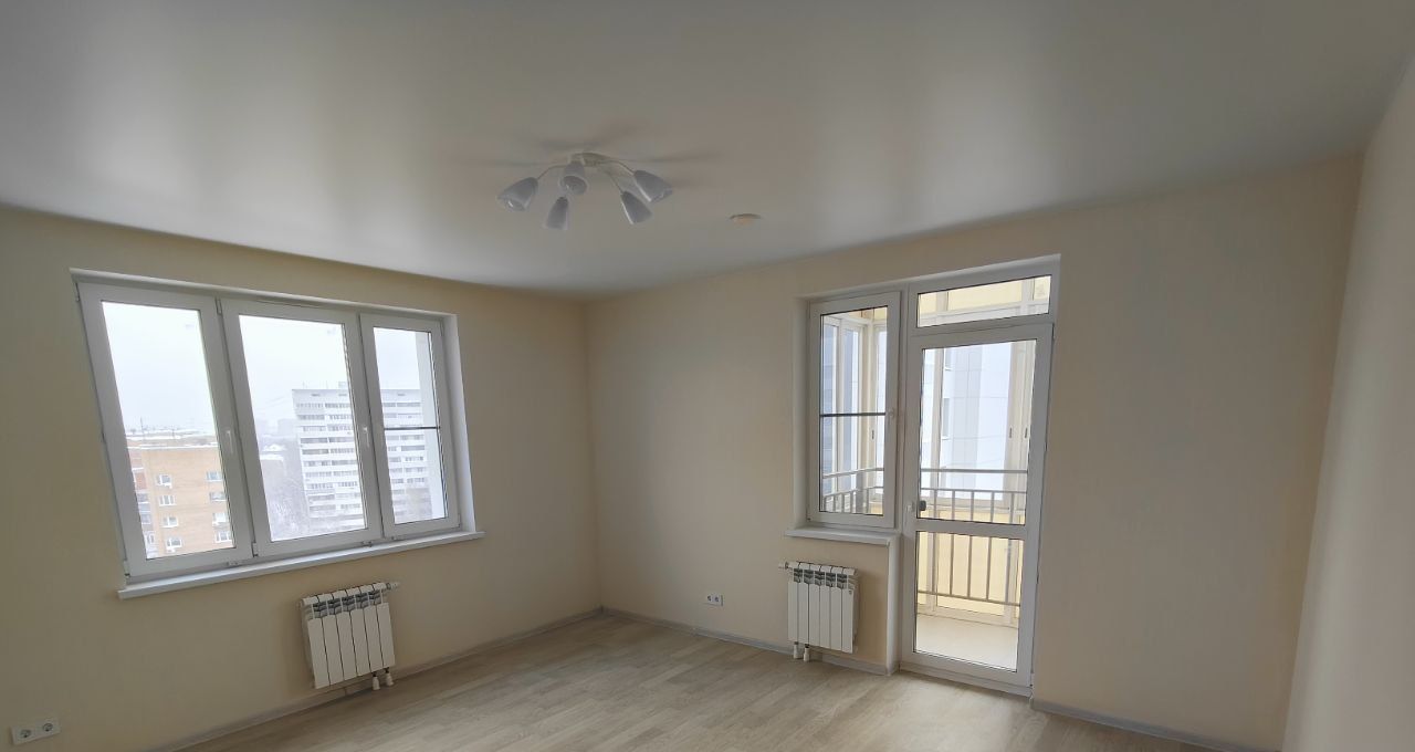 Двухкомнатная квартира площадью 56,3 кв. метров на 11 этаже 19-этажного дома. Жилая площадь - 32,9 кв.м, кухня -10,4 кв.м. Во всей квартире выполнен качественный ремонт от застройщика. Комнаты изолированы, есть просторный застеклённый балкон. Высота потолков 2,85 м. Санузел раздельный, в плитке до потолка. В туалете есть умывальник. Отличный панорамный вид из окна на 2 стороны (на восток и юг), тишина и спокойствие.