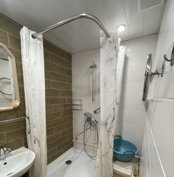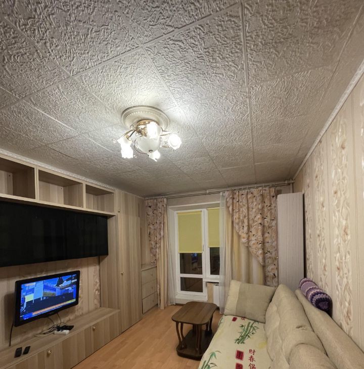 Квартира полностью меблирована с учётом всех необходимых потребностей для комфортной жизни. В комнате двуспальный раскладной диван с механизмом еврокнижка, много шкафов и мест для хранения. Имеется вся необходимая техника: холодильник 2-камерный, СВЧ, стиральная машина, три телевизора. Ванная комната оборудована душевой кабиной. Окна ПВХ, застекленная лоджия.