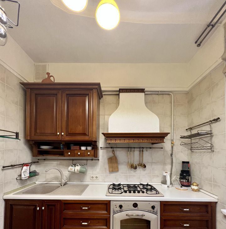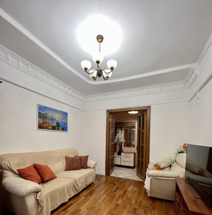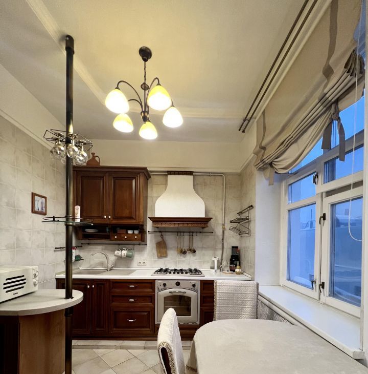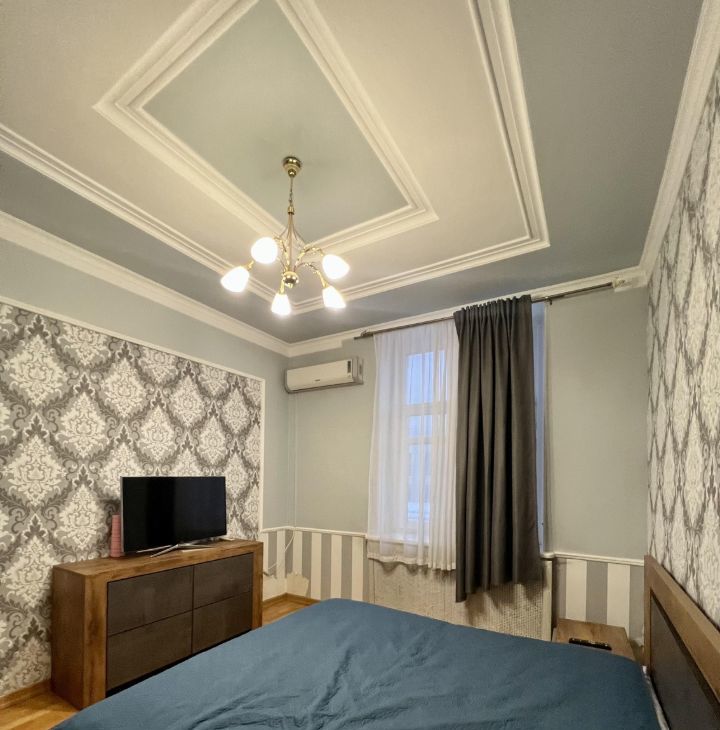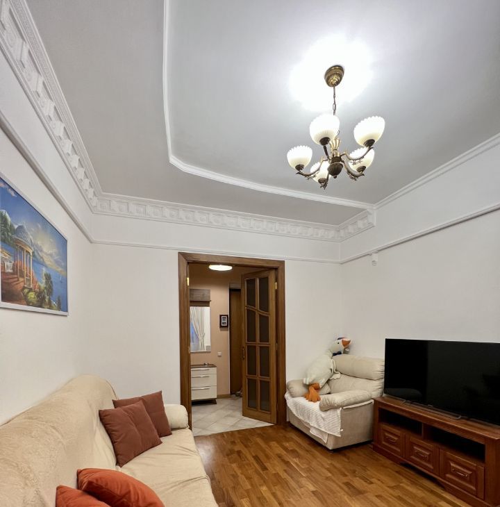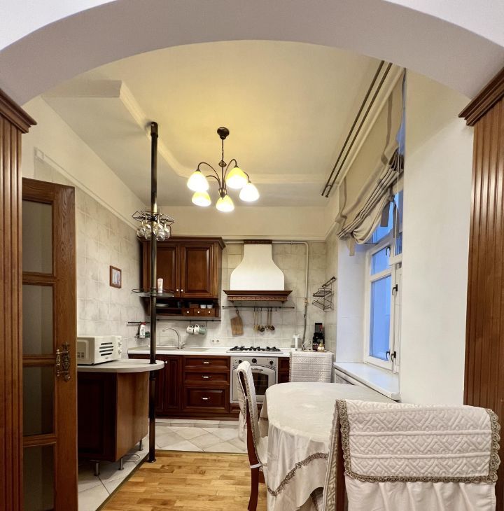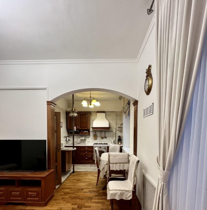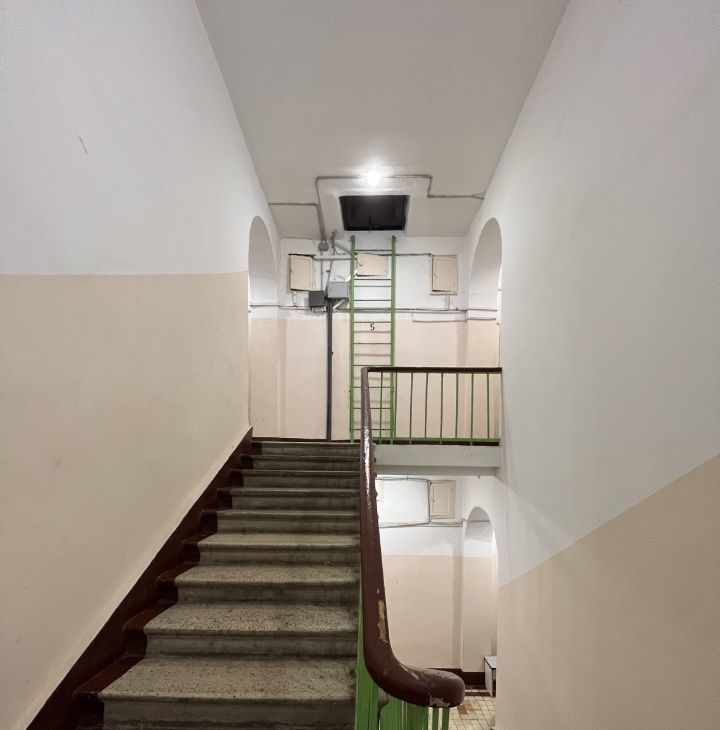 Квартира расположена на 5 этаже 5-этажного дома с высокими потолками 3.2 метра. Для любителей спорта - приятный бонус, лифта нет.