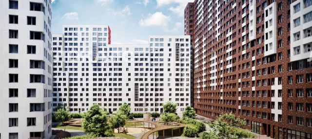 В доме есть вся необходимая инфраструктура: 2 кофейни, ресторан, аптека, 2 продуктовых магазина (ВкусВилл, Пятерочка).