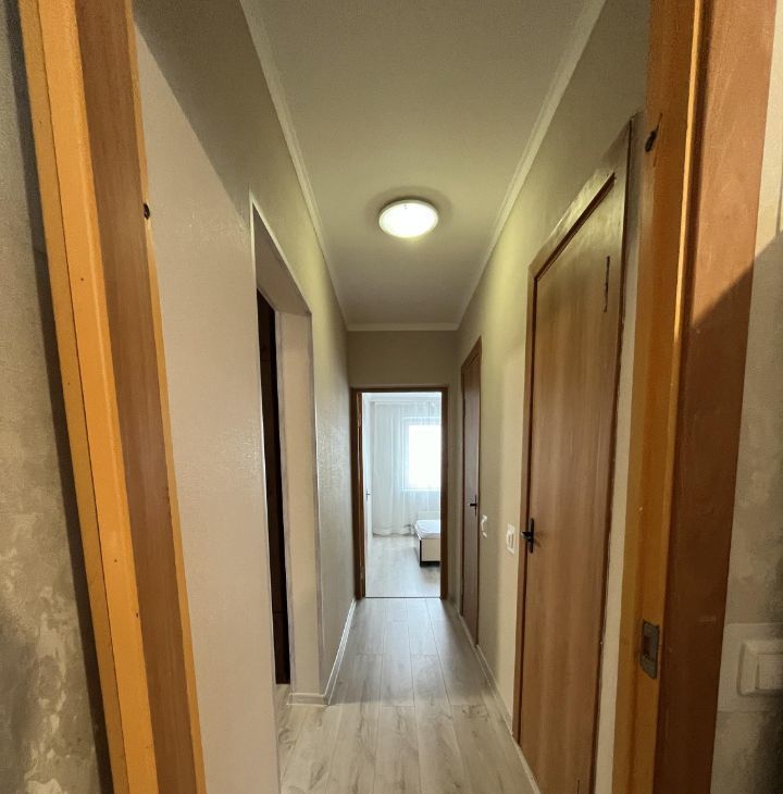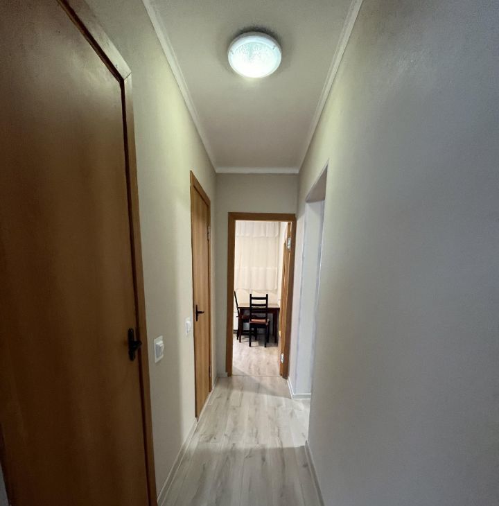 Предлагается светлая и комфортная двухкомнатная квартира площадью 56 м² с раздельным санузлом и полноценной ванной. Просторно, практично и идеально подходит для комфортного проживания семьи или пары. Квартира располагается вдоль двух перпендикулярных коридоров, что обеспечивает удобство перемещений между зоной кухни, спальнями и гостиной.