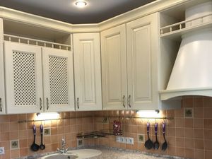 Огромная кухня с эркером и всей техникой! Стол раскладывается для встречи гостей. Есть идеальное место для новогодней ёлочки!!