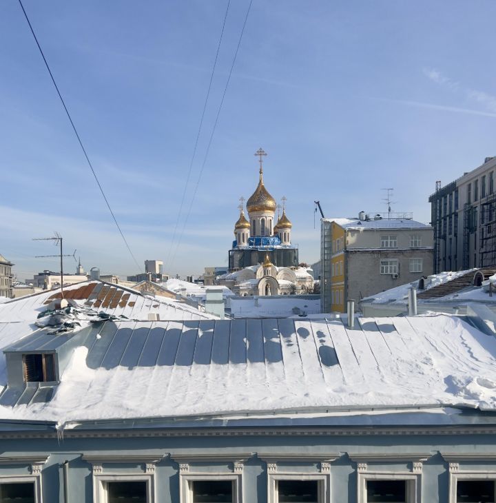 Дом расположен внутри Бульварного кольца. Подъезд с широкой исторической лестницей и коваными перилами. Последний этаж обеспечивает свет и тишину. Из окон — вид на два храма и историческую застройку центра. Два входа — парадный и запасной. Во дворе закреплено парковочное место.