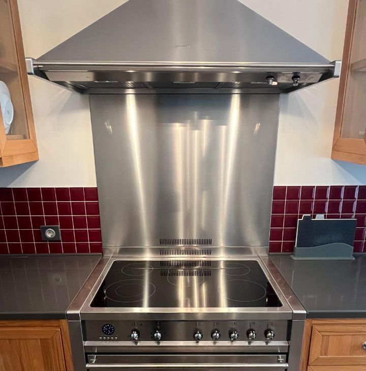 Установлена профессиональная напольная плита Smeg с духовкой и шестью конфорками. Техника Siemens и Liebherr.