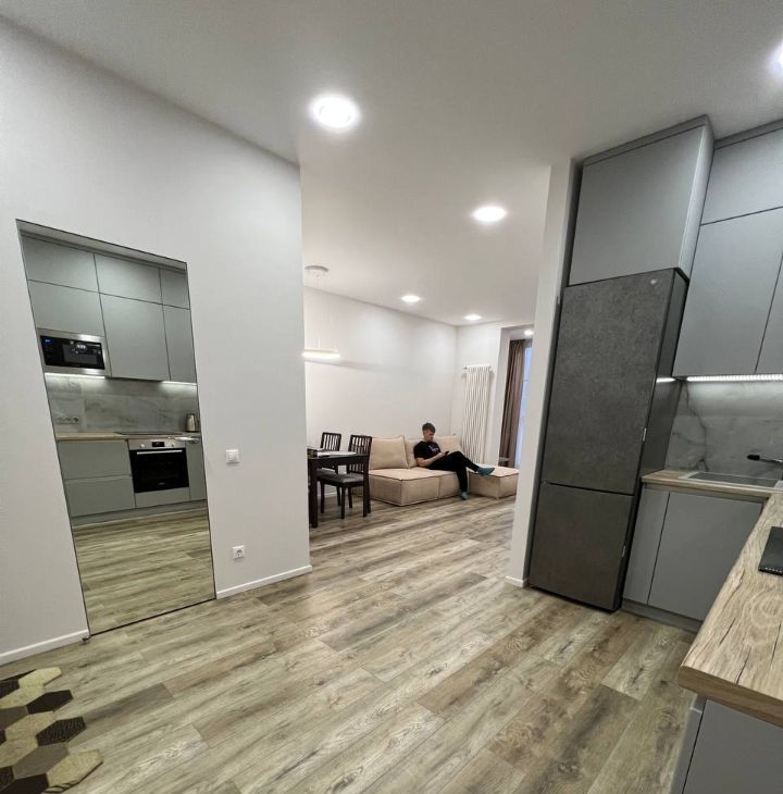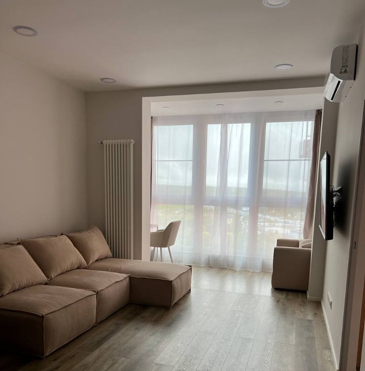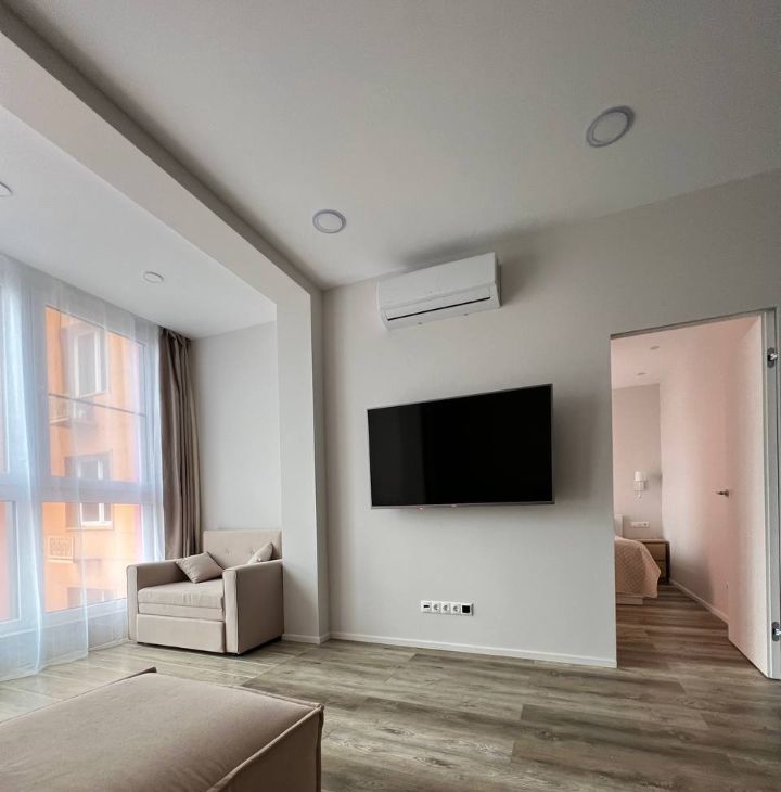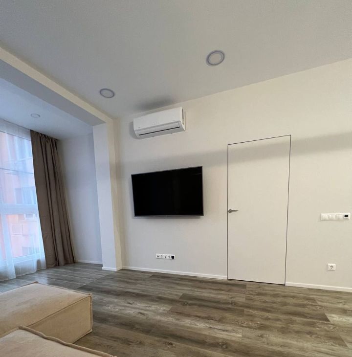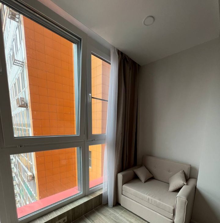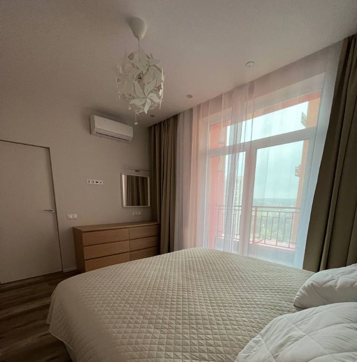В квартире сделан качественный евроремонт, есть вся необходимая мебель как на кухне, так и в комнатах. Санузел совмещенный, оборудован современной ванной. Для вашего комфорта предусмотрена вся необходимая техника: кондиционер, холодильник, посудомоечная машина, телевизор и стиральная машина. Также есть интернет, поэтому все условия для работы и отдыха на месте. Большой балкон с видом на город станет отличным местом для утреннего кофе или вечернего отдыха.