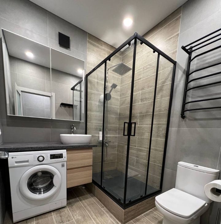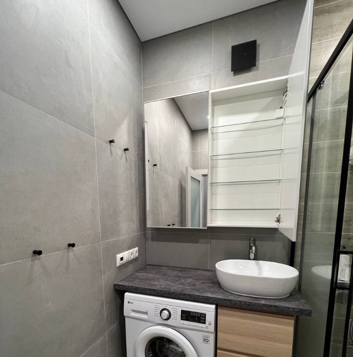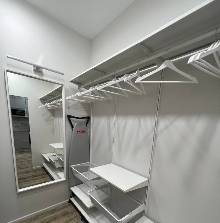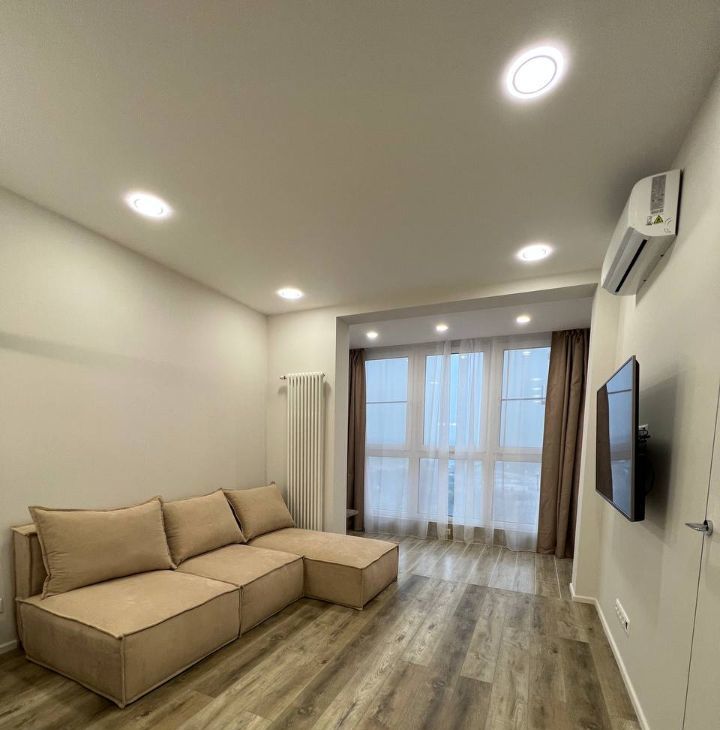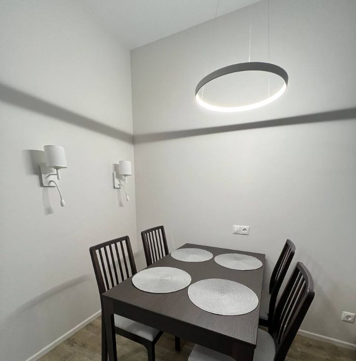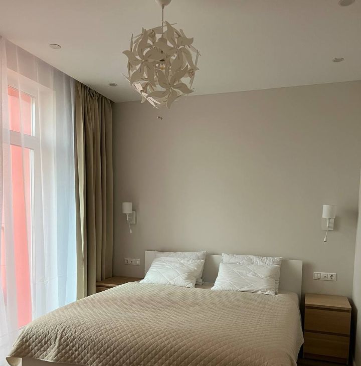 В квартире сделан качественный евроремонт, есть вся необходимая мебель как на кухне, так и в комнатах. Санузел совмещенный, оборудован современной ванной. Для вашего комфорта предусмотрена вся необходимая техника: кондиционер, холодильник, посудомоечная машина, телевизор и стиральная машина. Также есть интернет, поэтому все условия для работы и отдыха на месте. Большой балкон с видом на город станет отличным местом для утреннего кофе или вечернего отдыха.