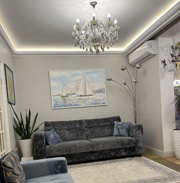 В квартире есть всё необходимое для комфортного проживания: качественный евроремонт, современная мебель на кухне и в комнате, а также необходимая техника кондиционер, холодильник, телевизор и стиральная машина. Площадь кухни составляет 15 кв. м, что позволяет устроить уютные семейные обеды. Санузел совмещённый, оборудован ванной.