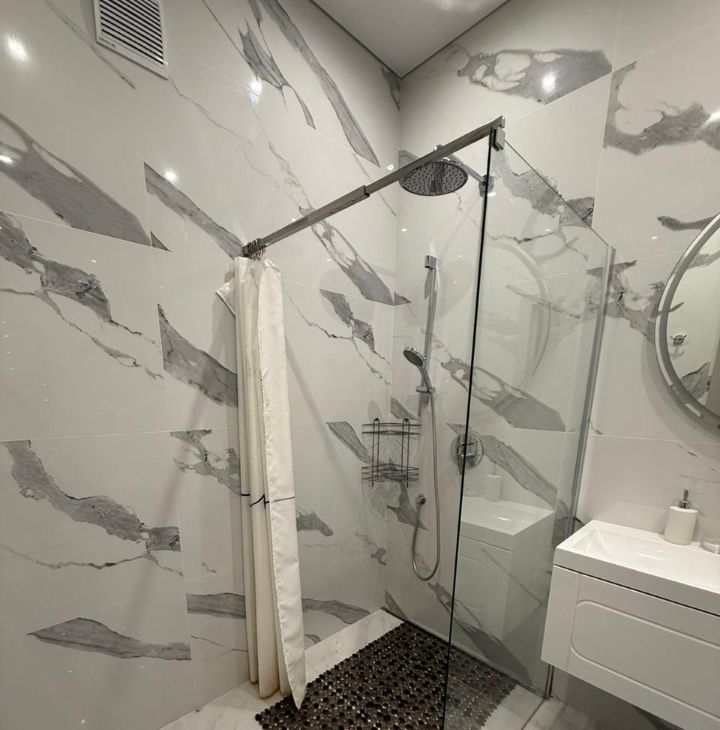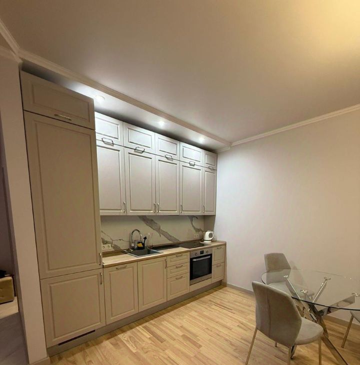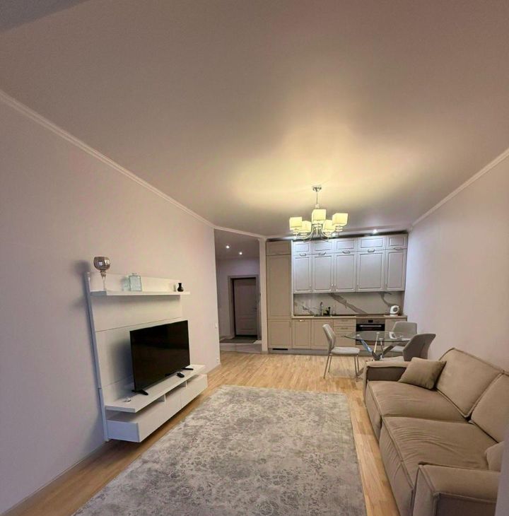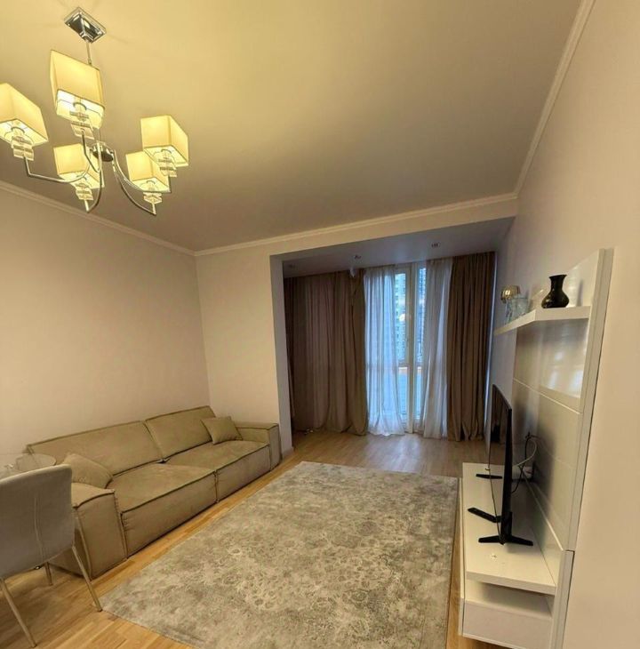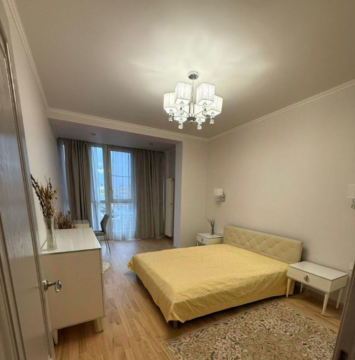 В квартире выполнен высококачественный ремонт. Планировка : просторная кухня - гостиная, отдельная спальня, вместительная гардеробная комната. Совмещенный санузел, оборудован качественной сантехникой. Квартира полностью меблирована и оборудована всей необходимой бытовой техникой. Панорамное остекление.