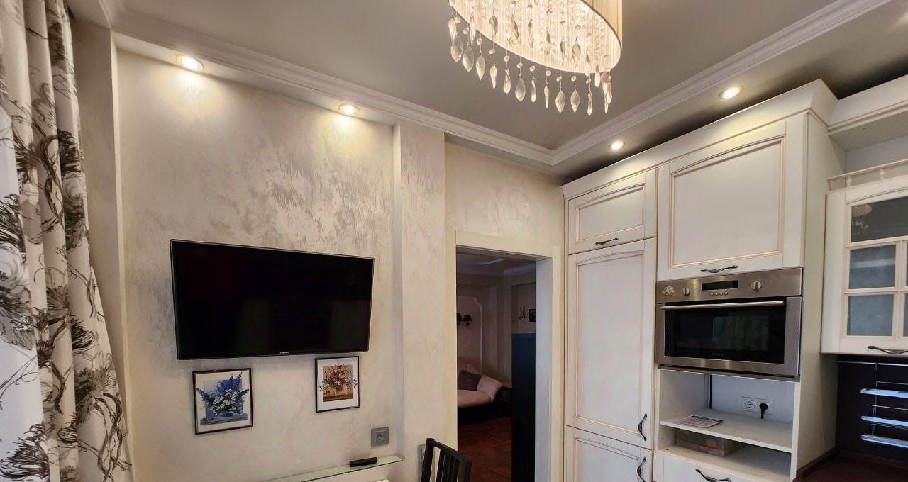 Квартира с современным дизайнерским ремонтом. В наличии вся необходимая мебель как в комнате, так и на кухне. Оснащена современной техникой: кондиционер, холодильник, посудомоечная машина, три телевизора, стиральная машина, СВЧ, вытяжка и др. Ванная комната оборудована ванной. Санузел раздельный, что очень удобно.