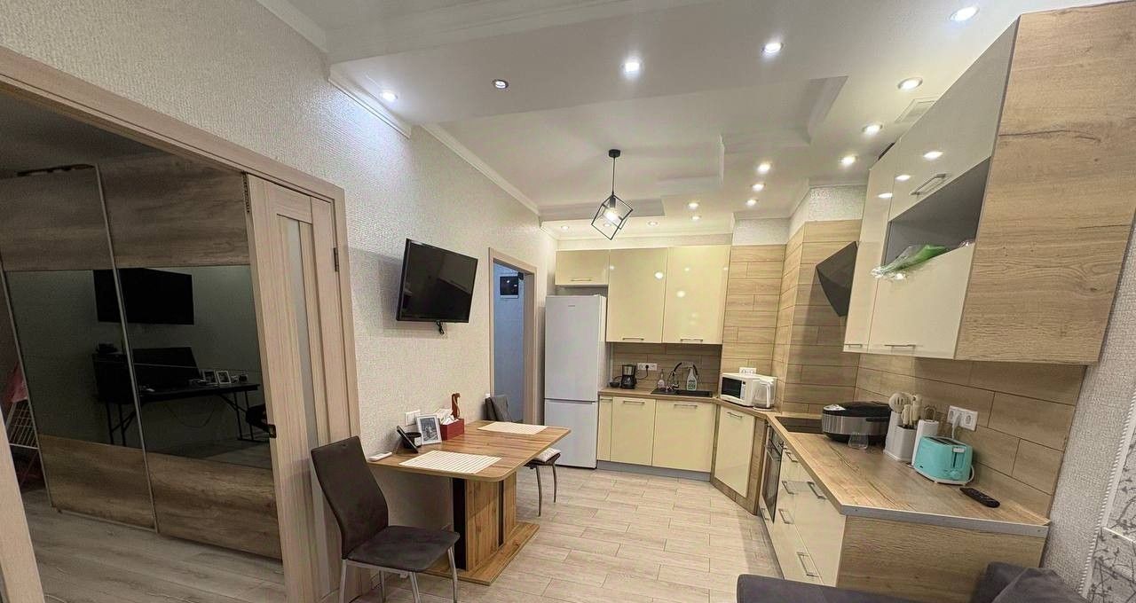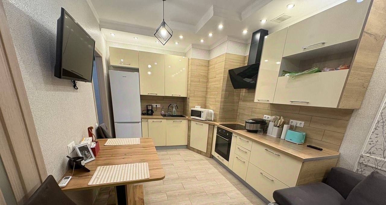 Отличная квартира по отличной цене. Великолепный вид из окна. Холодильник, телевизор, встроенная кухня, Интернет, Wi-Fi. Рядом есть все магазины, аптеки, школа, детский сад. Метро в пешей доступности.
