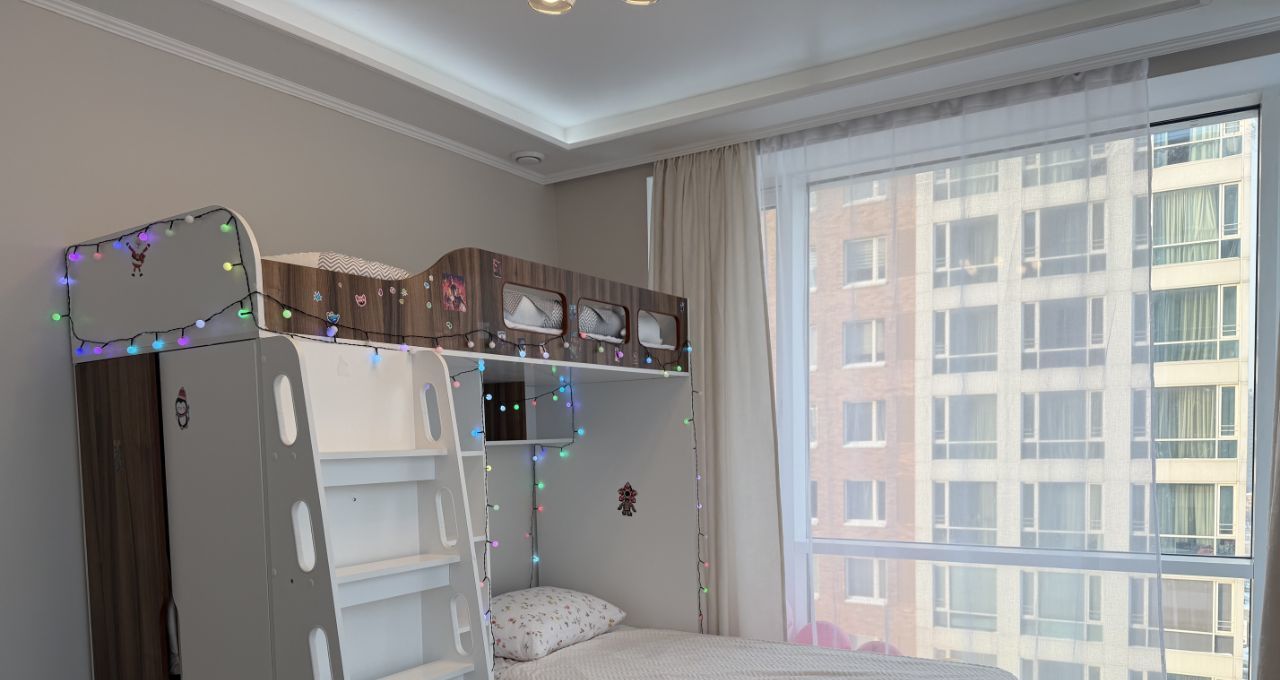 • Детская комната с двухъярусной кроватью и рабочей зоной