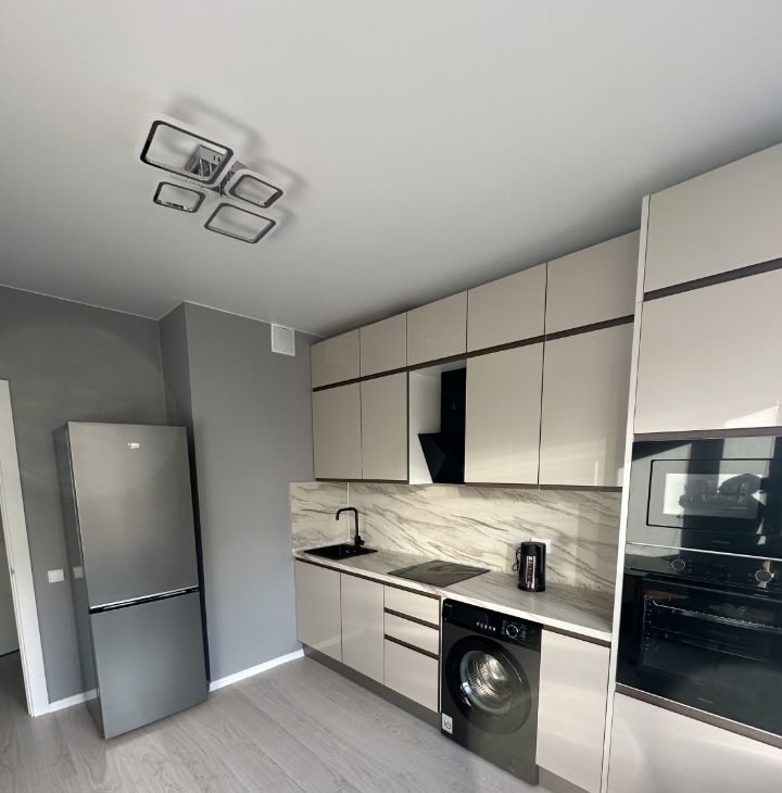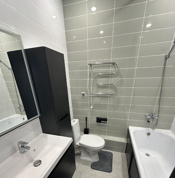 Квартира после свежего евроремонта, полностью укомплектована. Новая бытовая техника: встроенная кухня, холодильник, плита, вытяжка, духовой шкаф, СВЧ, стиральная и посудомоечная машины, кондиционер. Просторный шкаф-купе во всю стену для хранения вещей. Новая сантехника в санузле.
