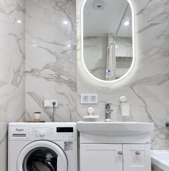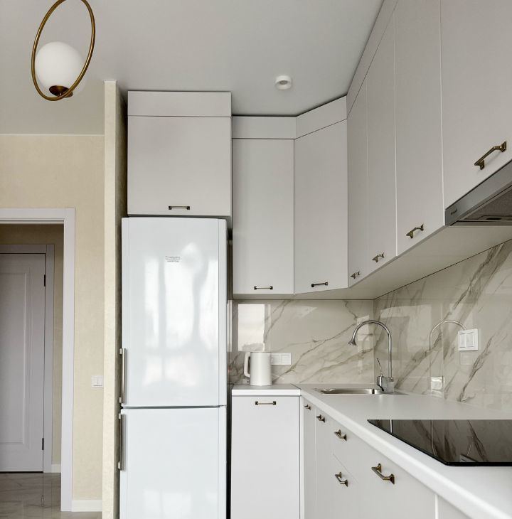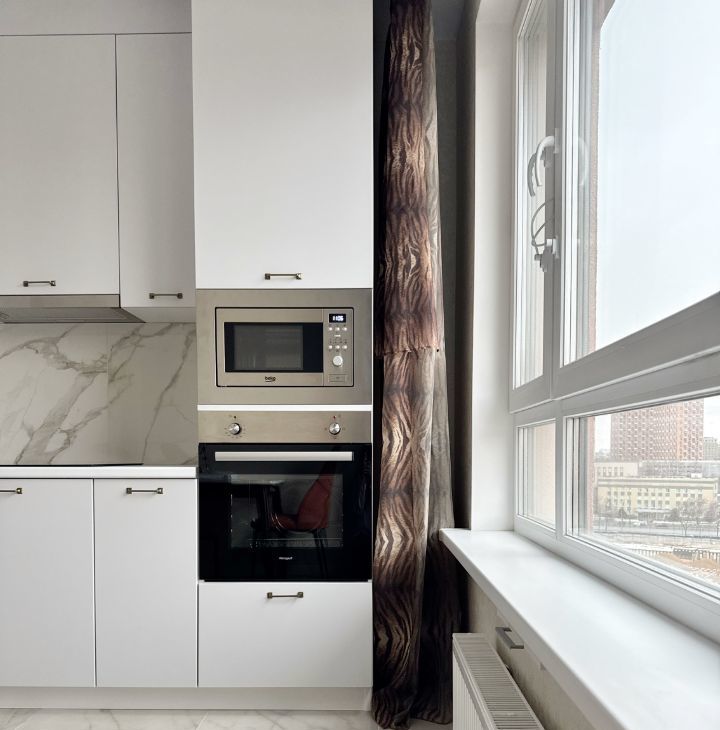 Бытoвая тeхникa: xолодильник, варочная панель, духовой шкаф, вытяжка, телевизор, электрический чайник, микроволновая печь, стиральная машина, посудомоечная машина, кондиционер.