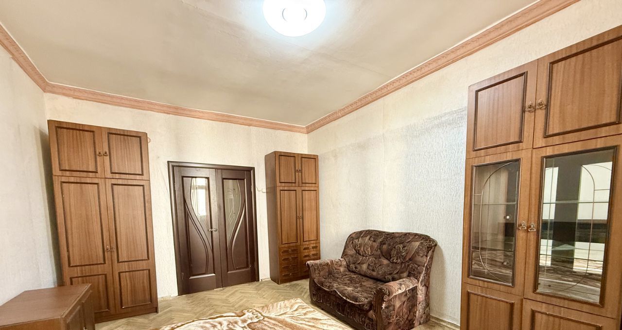 В квартире сделан косметический ремонт. Светлая кухня, оборудованная всем необходимым. Раздельный санузел. Изолированные просторные комнаты (18м2 и 20м2). В комнате также есть мебель, что позволит вам быстро и комфортно обустроиться (приобретение второго спального места обсуждается индивидуально). Высота потолков — 3 метра, что добавляет ощущения простора и света. Окна выходят во двор, поэтому в квартире тихо и спокойно.