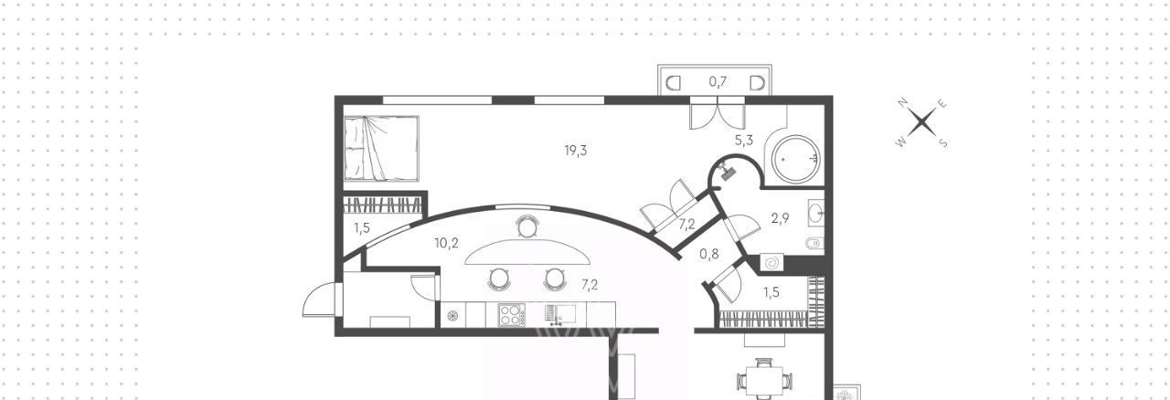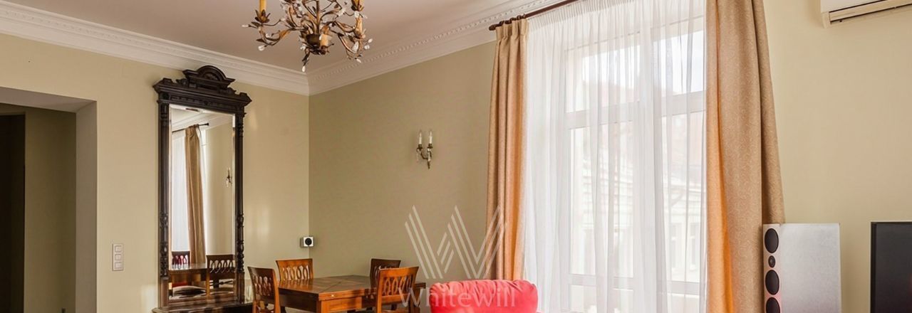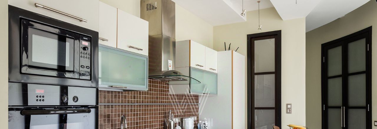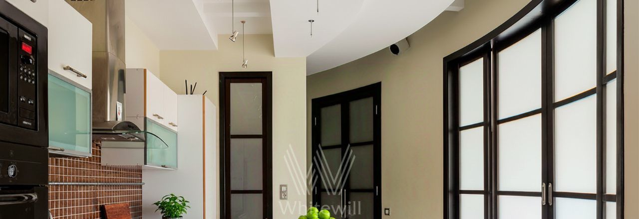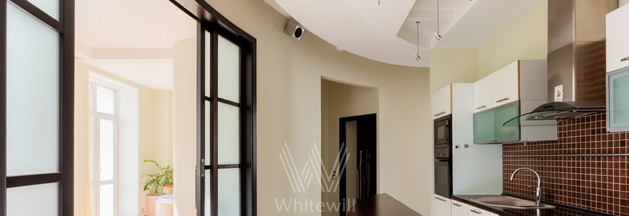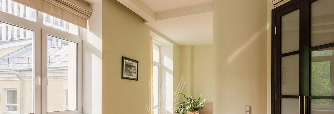 Просторная квартира c одной спальней общей площадью 80 м² в доме "Саввинская набережная, 3" на берегу Москвы-реки в Хамовниках. Интерьер оформлен в современном стиле в светлых лаконичных светлых тонах. Планировка: гостиная с выходом на балкон, кухня-столовая, просторная спальня со своей ванной комнатой и выходом на балкон, санузел с душем, две гардеробные, кладовая и холл. Высота потолков 3,2 метра. Квартира полностью укомплектована мебелью и бытовой техникой, установлена система кондиционирования. Окна ориентированы на две стороны света, открываются панорамные виды на Москву-реку и во двор.