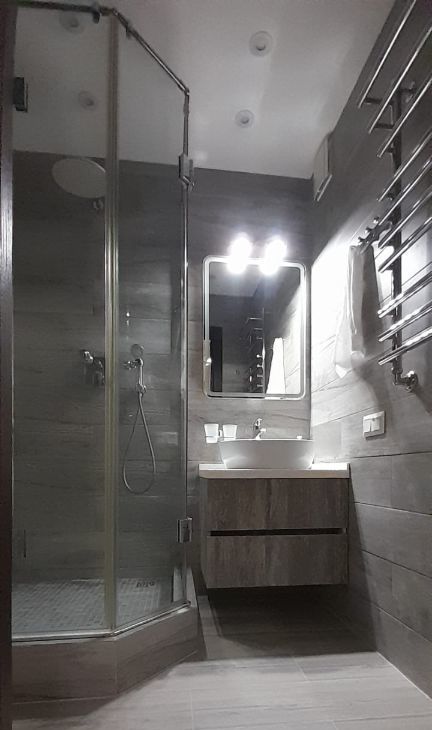 Квартира оформлена со вкусом: в ней есть всё необходимое для комфортного проживания. В комнатах и на кухне установлена мебель, из техники - в каждой комнате и на кухне установлены кондиционеры, холодильник, телевизоры в каждой комнате и на кухне, встроенная микроволновая печь, варочная панель, стиральная машина. Окна выходят на улицу, есть балкон, где можно насладиться свежим воздухом. В ванной комнате современная душевая кабина. Связь обеспечена интернетом и телефоном, поэтому, а значит, всегда будете на связи.