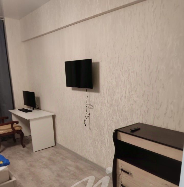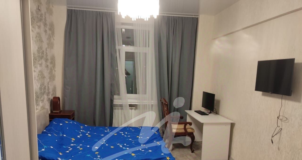 Спальня: двухспальная кровать, шкаф-купе, письменный стол. Во гостиной: диван раскладной, телевизор, шкаф-купе, стол.